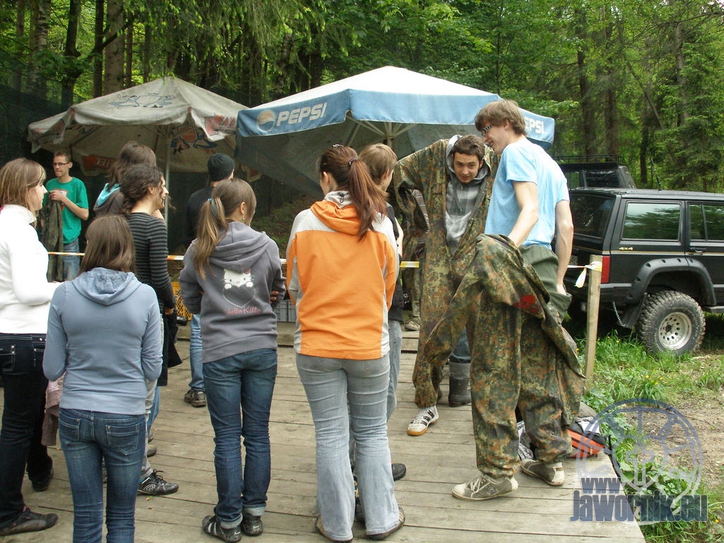 W piątek 4 czerwca br. młodzieżówka z Wisły-Jawornika zamiast tradycyjnego spotkania postanowiła sobie nieco urozmaicić czas. Punktualnie o godzinie 15.40 wszyscy zgromadziliśmy się na górnym przystanku w Jaworniku. Celem wyprawy były okolice parku linowego, nieopodal skoczni narciarskich w Wiśle-Centrum. Po fali licznych ulew oraz niesprzyjających warunków atmosferycznych, które miały miejsce w tym tygodniu, Pan Bóg pobłogosławił nam, obdarzając dobrą pogodą. Spotkanie jak się później okazało było nietypowe… Jaworniczańska młodzieżówka z pokaźną bronią, prawdziwymi kombinezonami w kolorze „moro” próbowała swych sił w tzw. „paintballu”! Kiedy podzieleni na dwa oddziały wyruszyliśmy w kierunku specjalnie przygotowanych poligonów, dopiero wtedy poczuliśmy prawdziwy smak i emocje zabawy. Sceny z naszych akcji niekiedy przypominały obrazki żywcem ściągnięte z misji polskich kontyngentów w Afganistanie! Na szczęście nieliczne obrażenia jakie doznali wiślańscy żołnierze były niegroźne i pozwoliły na przeżycie dalszej części spotkania. Po wspaniałej i pełnej wrażeń zabawie, główny organizator – Krzysiek, zaoferował wszystkim uczestnikom ekstremalny przejazd jeepem. Przejażdżka tym pojazdem, po nietuzinkowych leśnych trasach nieopodal ulicy Bukowej, mroziła krew w żyłach uczestnikom szalonej wyprawy! Niebezpieczne zakręty, ogromna ilość drzew na trasie, śliska nawierzchnia sprawiły, iż ta przygoda na długo pozostanie w naszej pamięci. Na sam koniec przyszła pora na gry i zabawy oraz wspólne ognisko. Dla smakoszy była to idealna okazja do upieczenia i konsumpcji kiełbasy. Najbardziej wytrwali spróbowali swych sił także w przeciąganiu liny! Dzięki Bożemu prowadzeniu i dobrej zabawie dzień ten pozostawi piękne wspomnienia w naszych głowach.