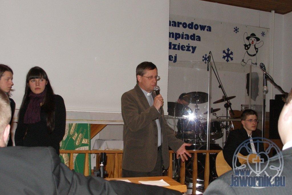 Wszystkich zebranych przywitał ks. Zdzisław Sztwiertnia, gospodarz miejsca oraz zarazem organizator XI Zimowej Olimpiady Dzieci i Młodzieży Ewangelickiej. Słowa pozdrowienia do uczestników i zawodników skierował ks. Grzegorz Giemza, Ogólnopolski Duszpasterz Młodzieży oraz burmistrz Wisły, Jan Poloczek.
