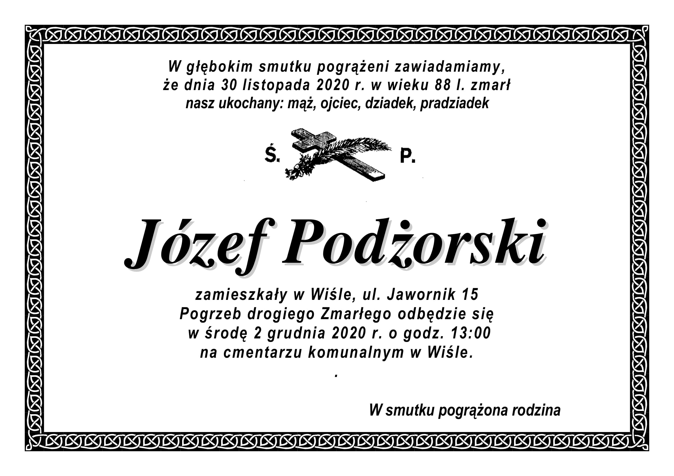 Zmarł śp. Józef Podżorski, ze smutkiem przekazujemy informacje o pogrzebie