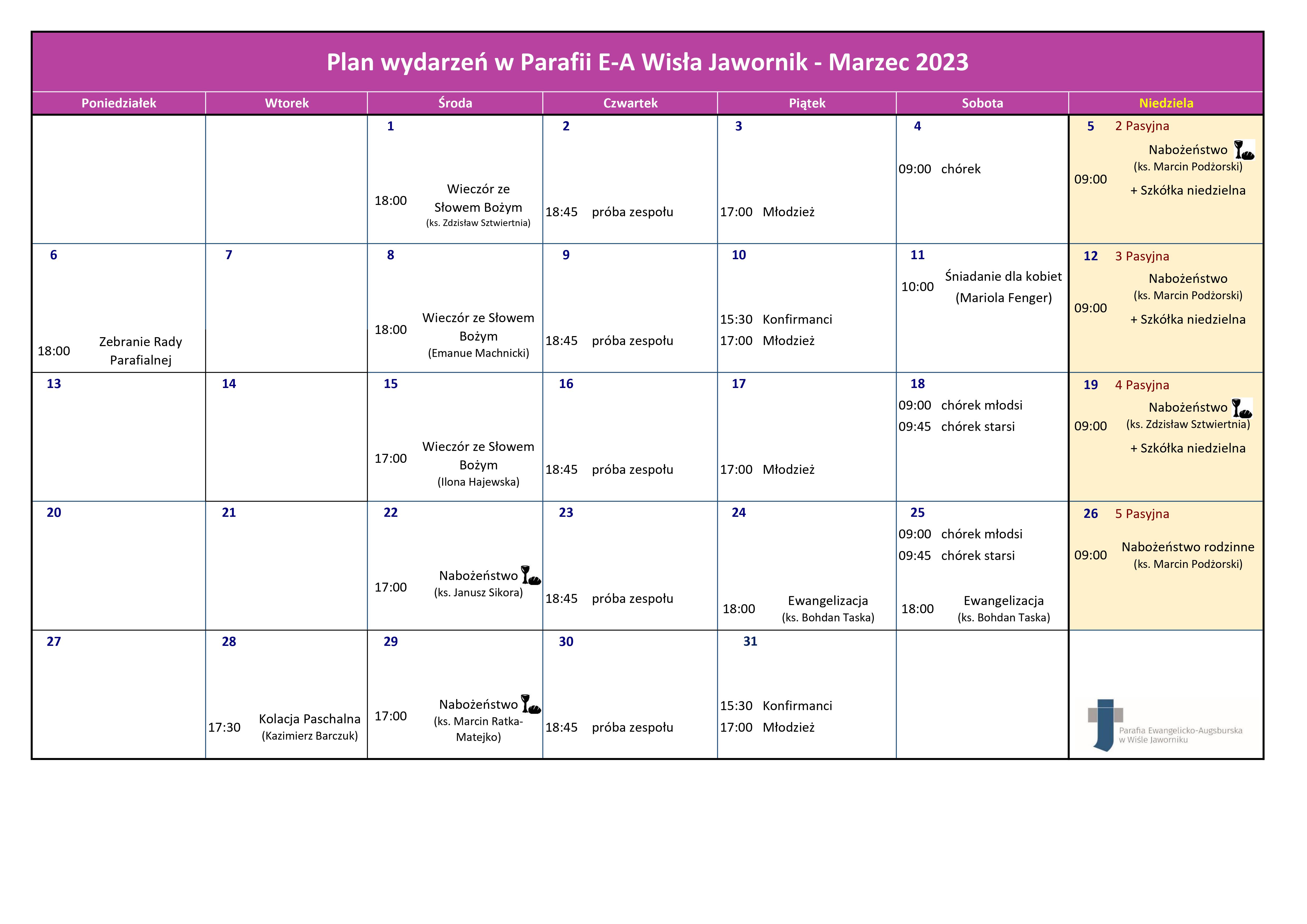 zapraszamy na marcowe nabożeństwa i spotkania w Parafii
