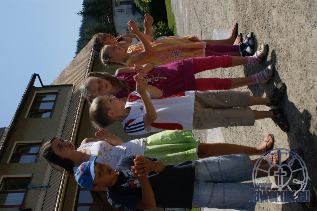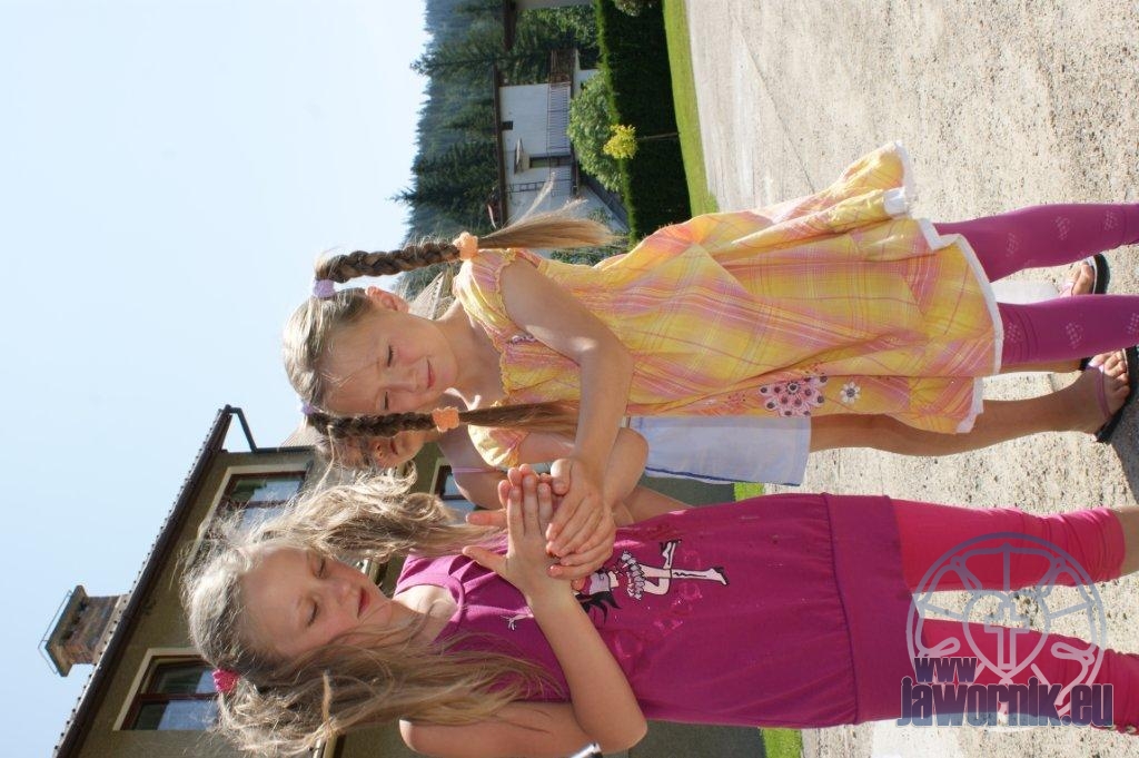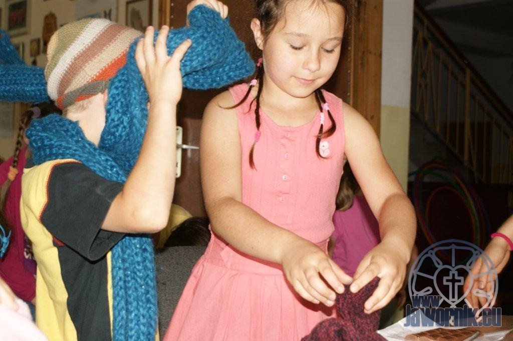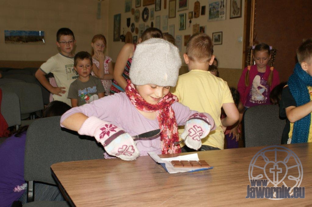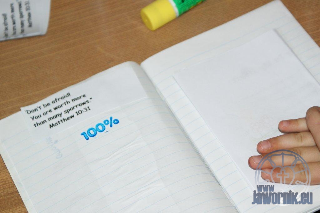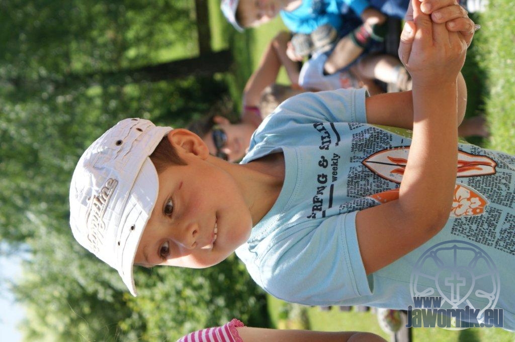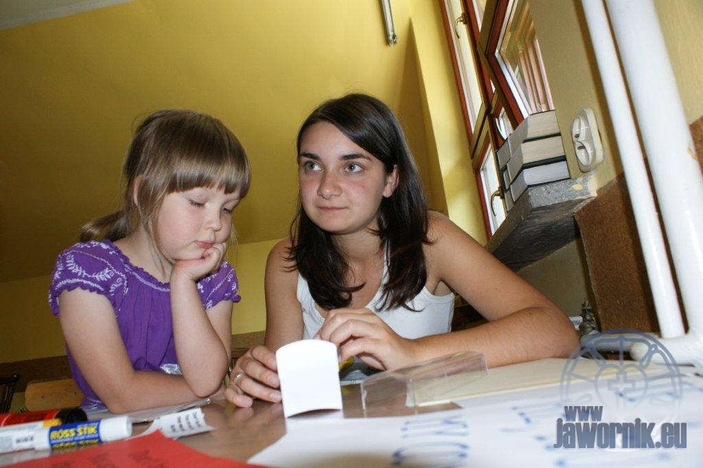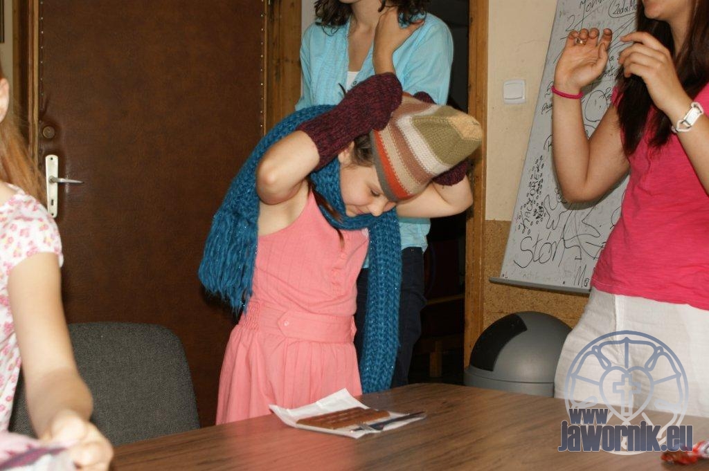 Zaczynaliśmy od wspólnego śpiewu szkółkowych piosenek. Poznaliśmy także kilka piosenek w języku angielskim. Kolejnym punktem programu była lekcja biblijna. Dzieci miały okazję nauczyć się nowych słówek, które były przewodnimi z każdej historii biblijnej. Staraliśmy się urozmaicić zajęcia i zainteresować drogich milusińskich, w szczególności tych najbardziej wymagających- najmłodszych? Na zajęcia plastyczne i naukę wersetu dzieliliśmy się na grupę starszą i młodszą. Każdego dnia poznawaliśmy werset w języku angielskim, nawiązujący do uprzednio opowiadanej historii biblijnej. Następnie schodziliśmy do jadalni na małe co nieco. Po zaspokojeniu naszych żołądków nadchodził czas długo wyczekiwany przez dzieciaki. Nie trudno się domyśleć, że chodzi o zabawy i konkursy, w których dominowała zacięta walka o zwycięstwo. Wszystko skupiało się wokół Pana Jezusa, który zarówno w języku polskim jak i angielskim jest uosobieniem niezmierzonej miłości. Zwieńczeniem całotygodniowych spotkań było niedzielne nabożeństwo, na którym dzieci miały okazję zaprezentować dwie piosenki w języku angielskim. Jako opiekunowie tegorocznej półkolonii bardzo miło będziemy wspominać czas spędzony razem i mamy nadzieję, że z Bożą pomocą spotkamy się i za rok!