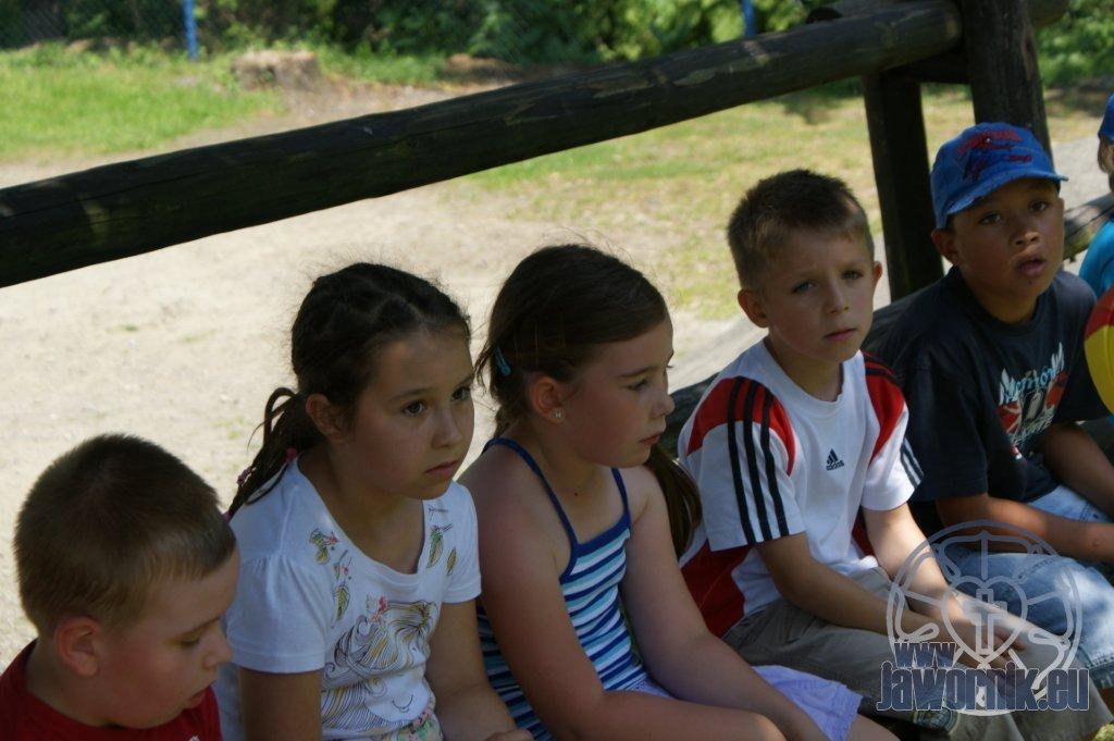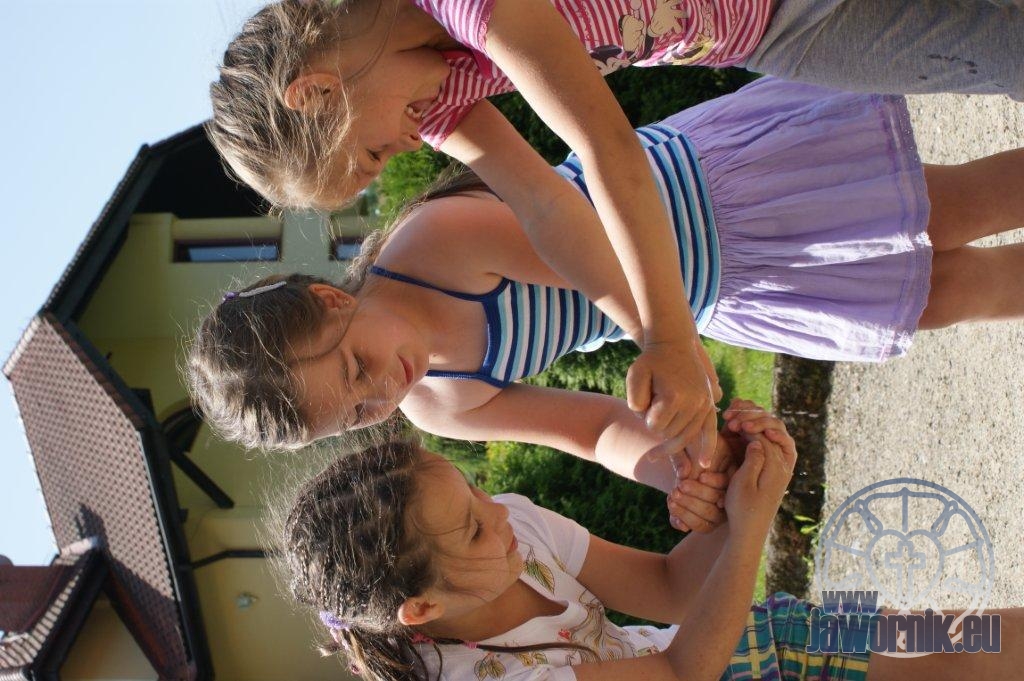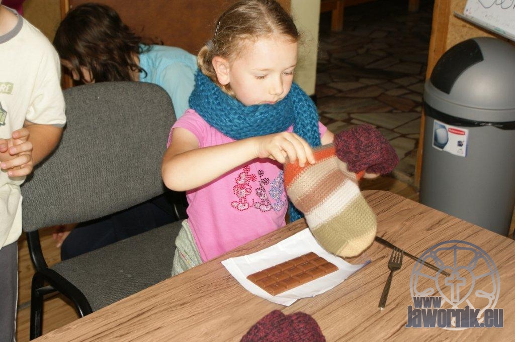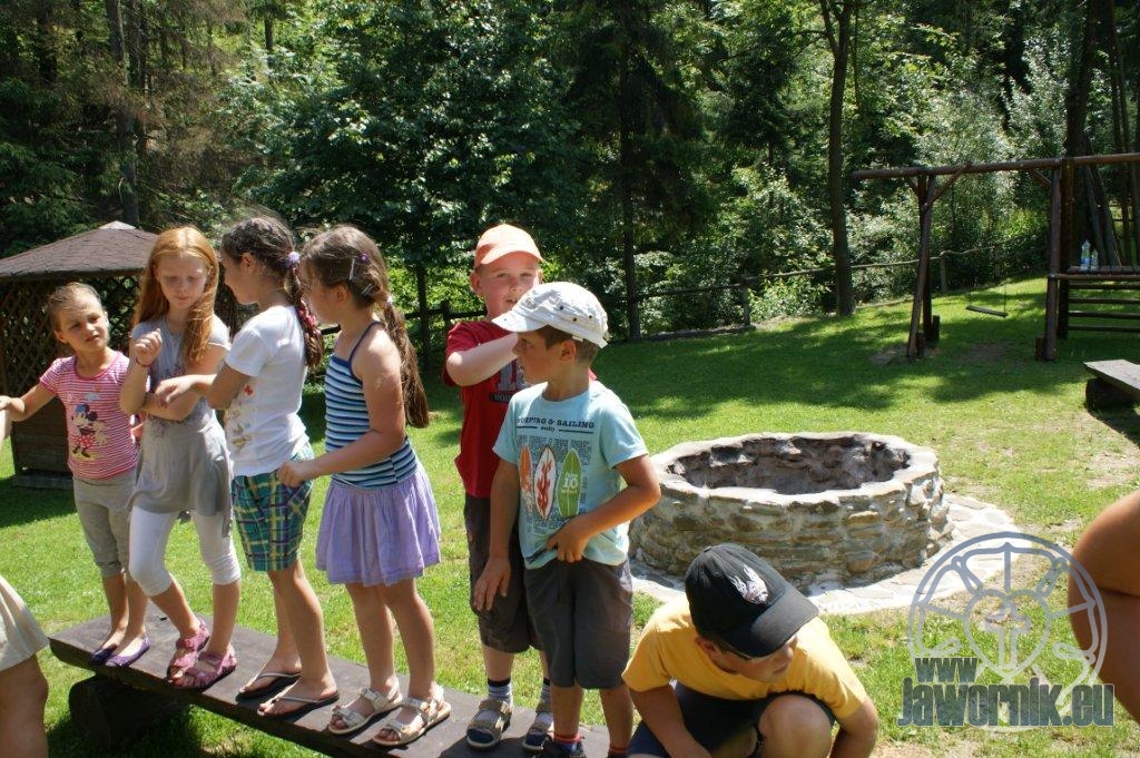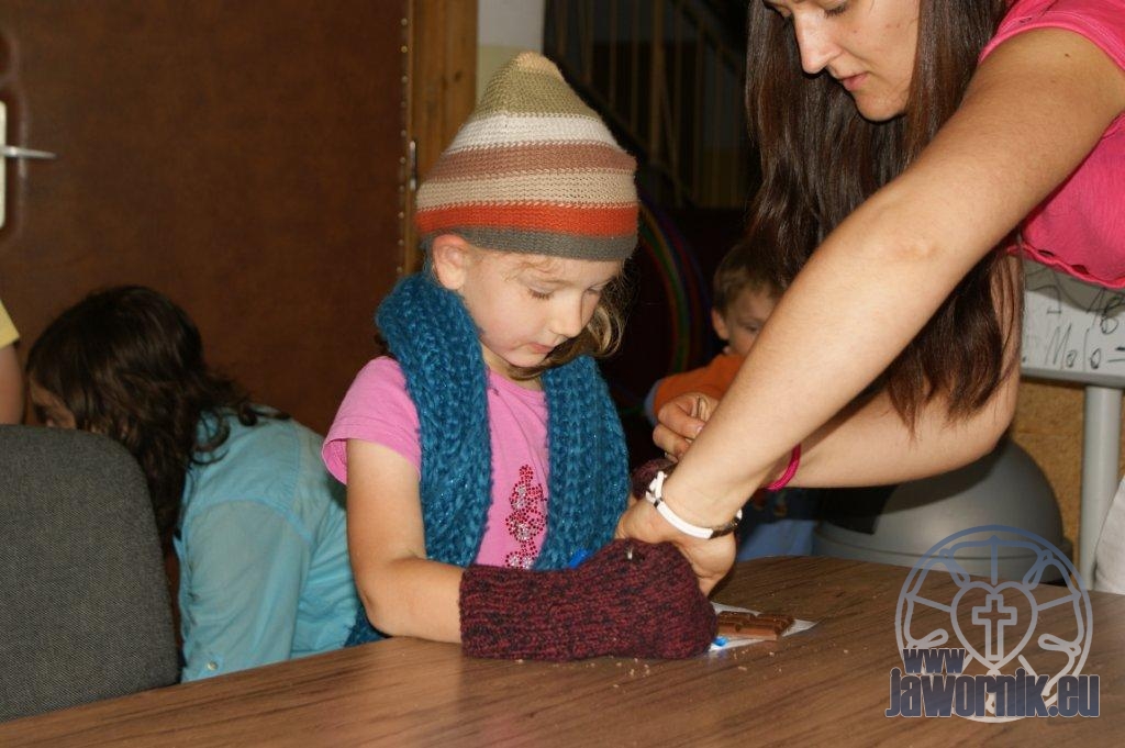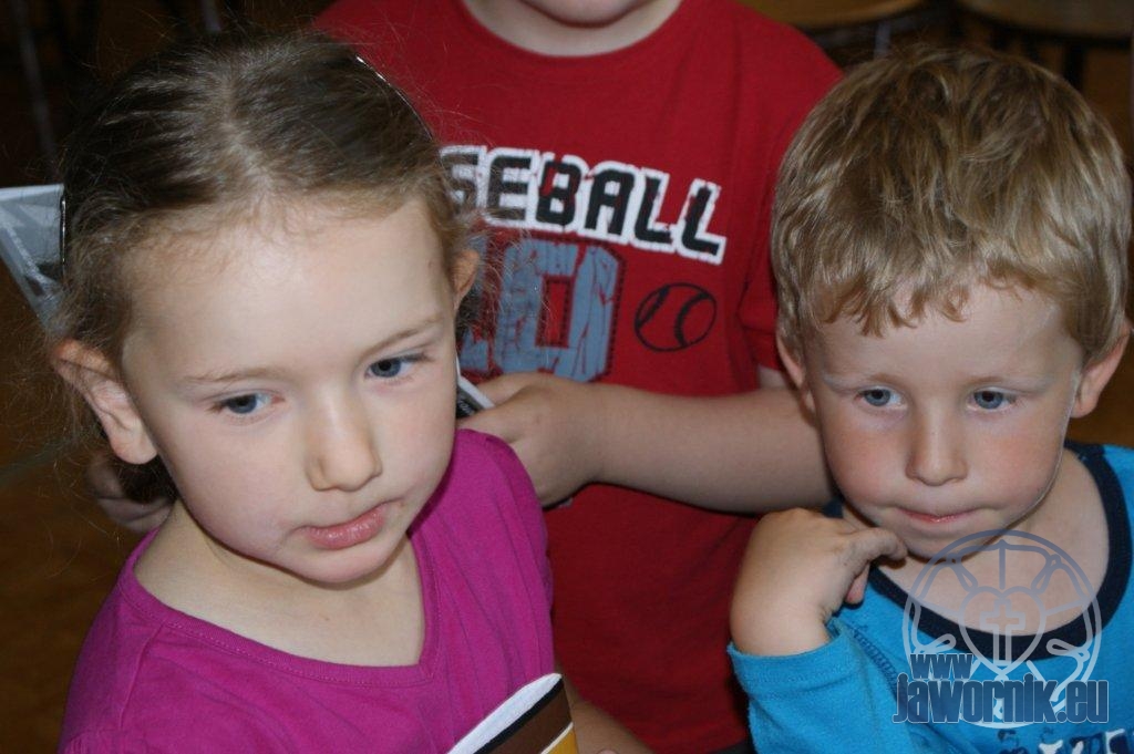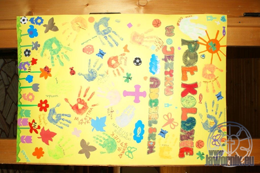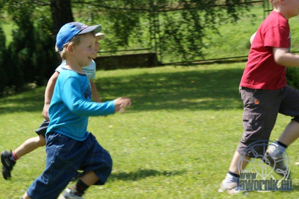 Zaczynaliśmy od wspólnego śpiewu szkółkowych piosenek. Poznaliśmy także kilka piosenek w języku angielskim. Kolejnym punktem programu była lekcja biblijna. Dzieci miały okazję nauczyć się nowych słówek, które były przewodnimi z każdej historii biblijnej. Staraliśmy się urozmaicić zajęcia i zainteresować drogich milusińskich, w szczególności tych najbardziej wymagających- najmłodszych? Na zajęcia plastyczne i naukę wersetu dzieliliśmy się na grupę starszą i młodszą. Każdego dnia poznawaliśmy werset w języku angielskim, nawiązujący do uprzednio opowiadanej historii biblijnej. Następnie schodziliśmy do jadalni na małe co nieco. Po zaspokojeniu naszych żołądków nadchodził czas długo wyczekiwany przez dzieciaki. Nie trudno się domyśleć, że chodzi o zabawy i konkursy, w których dominowała zacięta walka o zwycięstwo. Wszystko skupiało się wokół Pana Jezusa, który zarówno w języku polskim jak i angielskim jest uosobieniem niezmierzonej miłości. Zwieńczeniem całotygodniowych spotkań było niedzielne nabożeństwo, na którym dzieci miały okazję zaprezentować dwie piosenki w języku angielskim. Jako opiekunowie tegorocznej półkolonii bardzo miło będziemy wspominać czas spędzony razem i mamy nadzieję, że z Bożą pomocą spotkamy się i za rok!