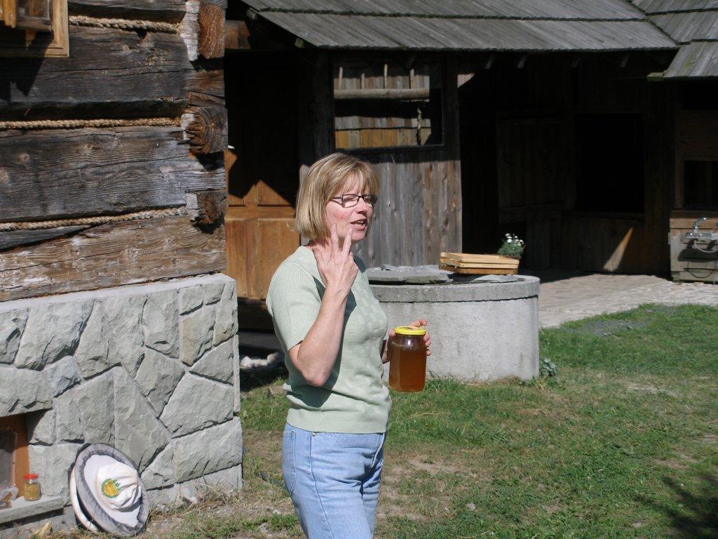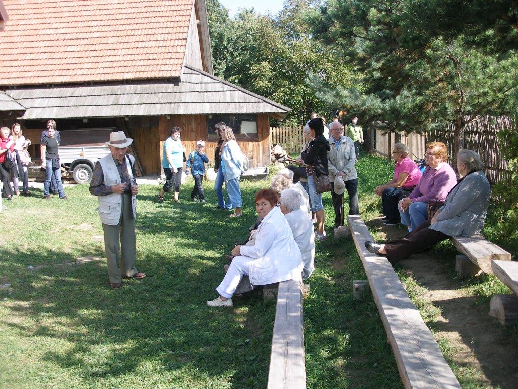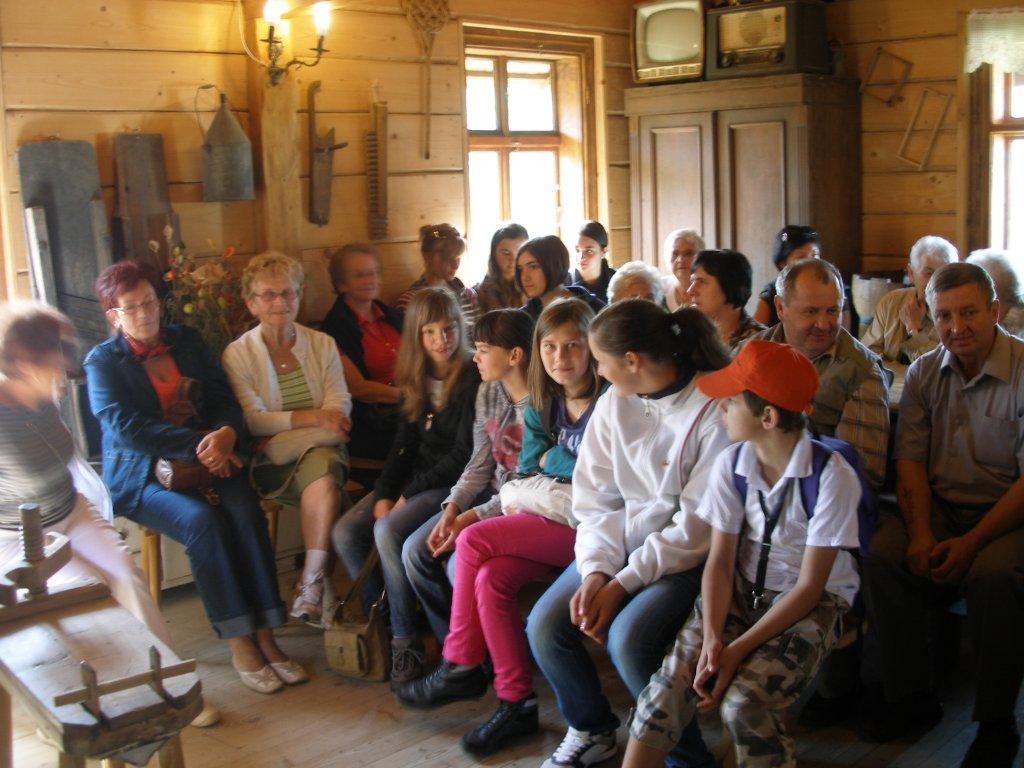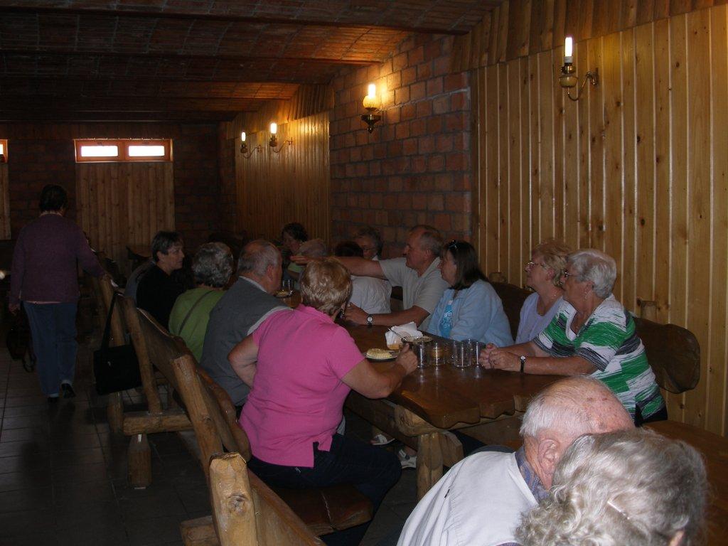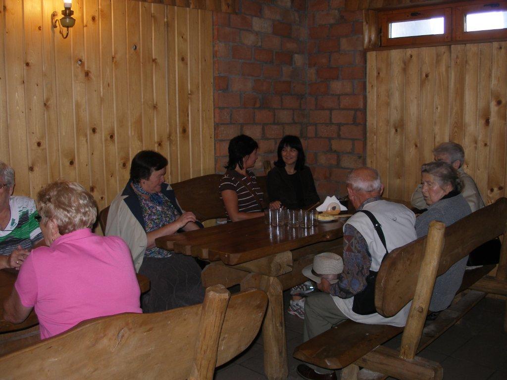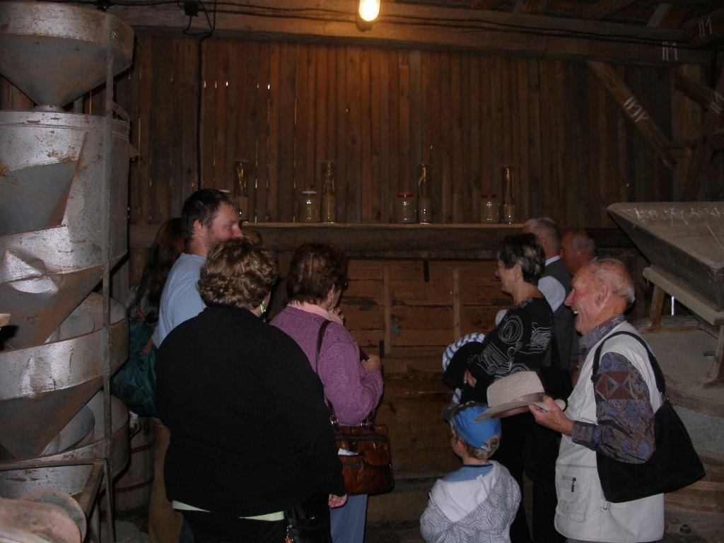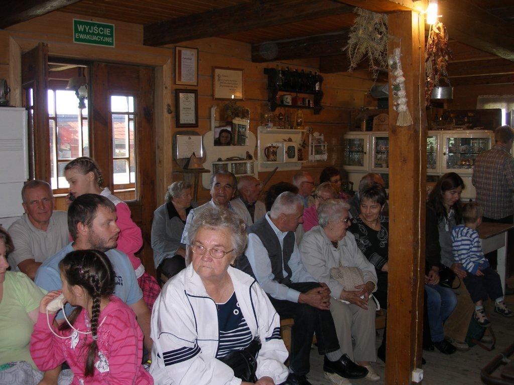 Każdy z uczestników naszej 50-cio osobowej grupy własnoręcznie kształtował podpłomyki, które następnie zostały wypieczone w chlebowym piecu i oczywiście skonsumowane wraz ze wspaniałymi dodatkami w postaci masła, miodu, ziołowego smalcu i kawy zbożowej z mlekiem. Wybornie smakował też chleb z żytniej mąki. W stojącej obok stodole zgromadzono cały szereg maszyn wykorzystywanych dawniej przy uprawie i obróbce ziarna. Poznaliśmy również sposoby pozyskiwania miodu oraz wiele ciekawostek związanych z życiem pszczół. Odwiedziny w "Chlebowej Chacie" stanowią doskonałą lekcję historii, szczególnie dla młodszego pokolenia, a wiadomości przekazane w niezwykle przystępny, często humorystyczny sposób z łatwością zapisywane są w pamięci.