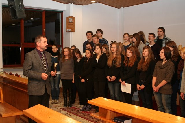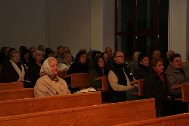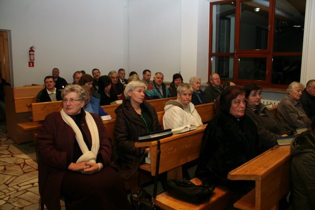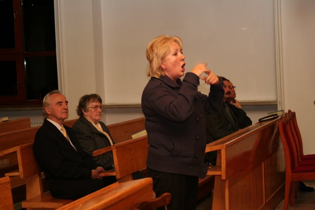 Ks. Kaczmarczyk przywołał historię życia wielu postaci, których życie stanowiło pełną oddania służbę dla Jezusa, często z poświęceniem własnego własnego życia np. Cyryl i Metody, Jan Hus, Maria Roy, Matka Teresa i wielu innych. O tym, jak Chrystus ratuje człowieka, a potem kieruje jego życie na właściwe tory opowiedziała nasza parafianka w swoim świadectwie. Z tematem ewangelizacji bardzo mocno korespondowały słowa pieśni solowych w wykonaniu Pani pastorowej Ewy Sztwiertni, pieśni zespołu młodzieżowego i chóru mieszanego naszej parafii oraz pieśni chóru młodzieżowego "Bel Canto" Liceum Ogólnokształcącego z Rybnika. A po wykładach gromadziliśmy się w jadalni, aby przy herbatce i wybornych wypiekach móc kontynuować rozważania. Warto było wykorzystać te wieczory dla budowania swojego życia w Chrystusie. Dzięki i chwała Mu za to.