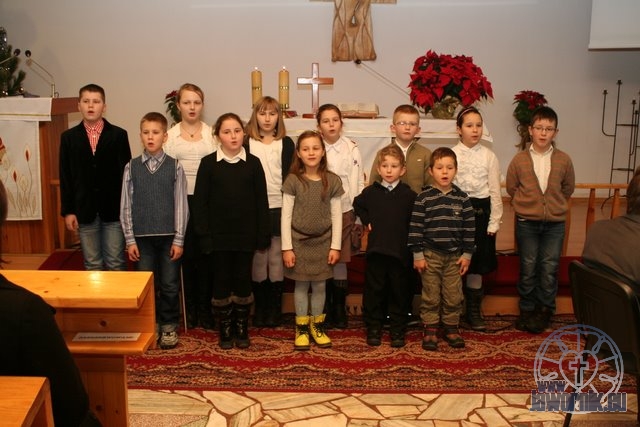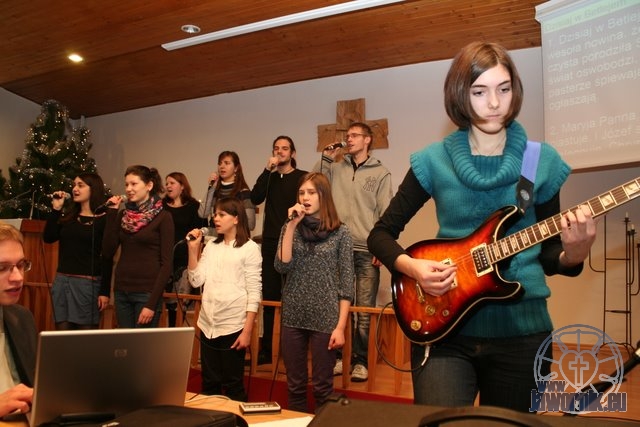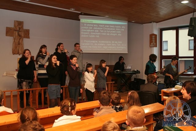 Po wigilijnej kolacji, w świątecznej atmosferze parafianie z Wisły Jawornika zgromadzili się w kaplicy, by wspólnie w śpiewie i modlitwie wyrazić swoją radość z przyjścia Zbawiciela, Jezusa Chrystusa na świat. Do refleksji skłaniał nie tylko przywołany przez proboszcza ks. Zdzisława Sztwiertnię biblijny tekst z ks. Izajasza o tym, że „lud, który chodzi w ciemności, ujrzy światło wielkie, nad mieszkańcami krainy mroków zabłyśnie światło”, ale także bogaty program muzyczny przewidziany na to spotkanie. Mieliśmy okazję wysłuchać pieśni wykonanych przez dwóch solistów – Martynę i Piotra, a także duet siostrzany – Anię i Martę, które zagrały na flecie i skrzypcach mało zanany utwór „Gwiazdo świeć, kolędo leć”. Piękne kolędy, m. in. „O gwiazdo betlejemska” czy „Dziecino słodka czemu drżysz”, stanowiły repertuar chóru parafialnego oraz młodzieżowego zespołu muzycznego przygotowany na ten świąteczny wieczór.