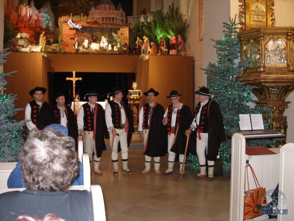 Koncert prowadził ks. dr Marian Niemiec, proboszcz Parafii Ewangelicko-Augsburskiej w Opolu. W koncercie udział wzięły cztery chóry: chór św. Franciszka z Opola, chór M. Drischnera Parafii Ewangelicko-Augsburskiej z Opola oraz chór mieszany z Wisły - Jawornika oraz chór "Cantabile" przy Gminnym Ośrodku Kultury w Dobrzeniu Wielkim. Przerwy między występami chórów wypełniało wspólne kolędowanie wszystkich osób bardzo licznie przybyłych na koncert. Niespodzianką i zarazem największą atrakcją tego wieczoru okazał się występ naszej grupy śpiewaczej "Wańcy". Z ust organizatorów popłynęło wiele ciepłych słów podziękowań pod adresem wszystkich wykonawców. "Bóg się rodzi, moc truchleje" to ostatnia kolęda wspólnie wyśpiewana tego wieczoru.
