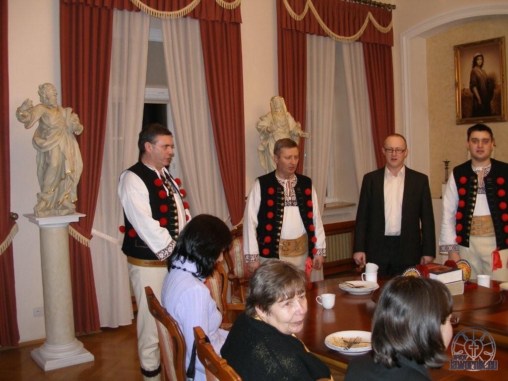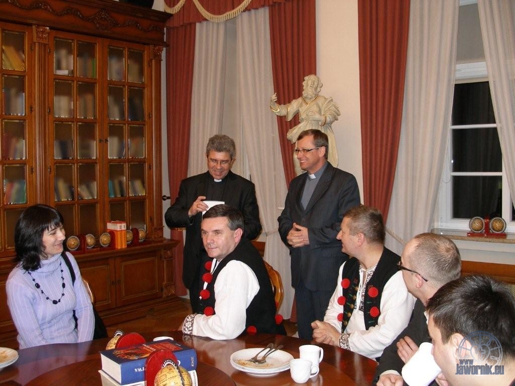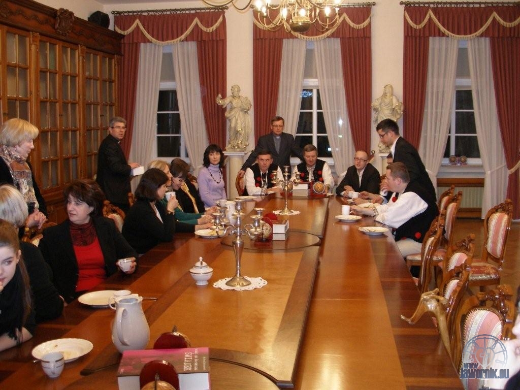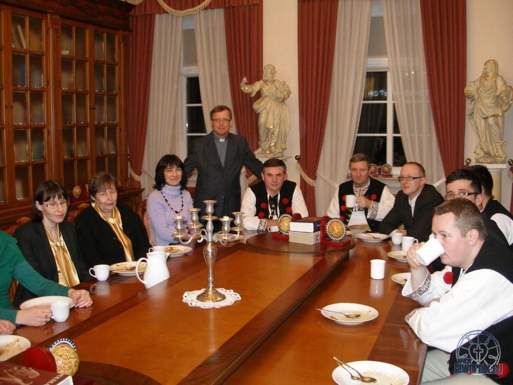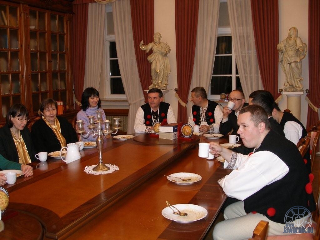 Po koncercie zaproszeni zostaliśmy na ciepłą kolację - smaczny bigos i herbatę. Ale to nie była jedyna uczta dla podniebienia tego dnia. Przed koncertem podejmowani byliśmy kawą i wspaniałymi wypiekami przez ks. Mariana Niemca i jego małżonkę. Zwiedziliśmy kościół, przetestowaliśmy jego akustykę i zgłębiliśmy wiedzę na temat burzliwych dziejów luteranizmu na opolskiej ziemi, którą podzielił się z nami ks. proboszcz.