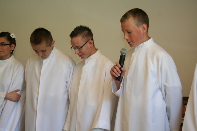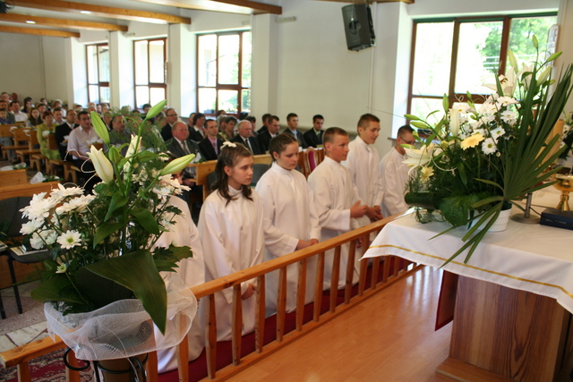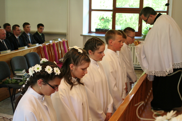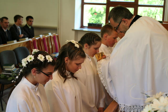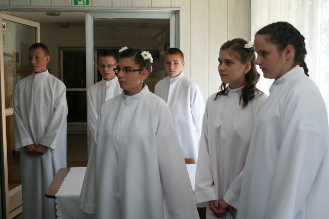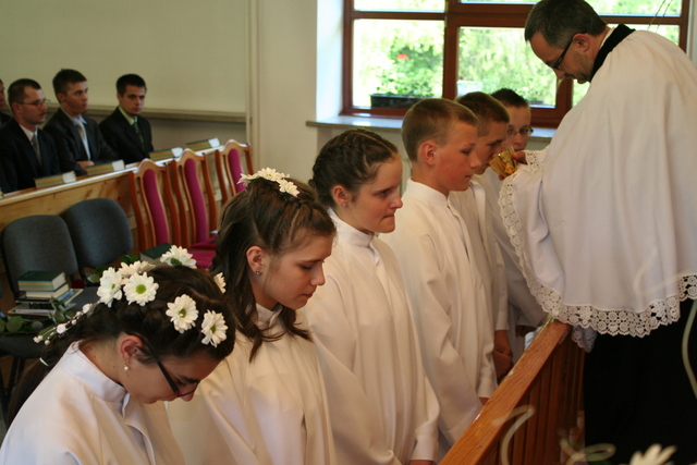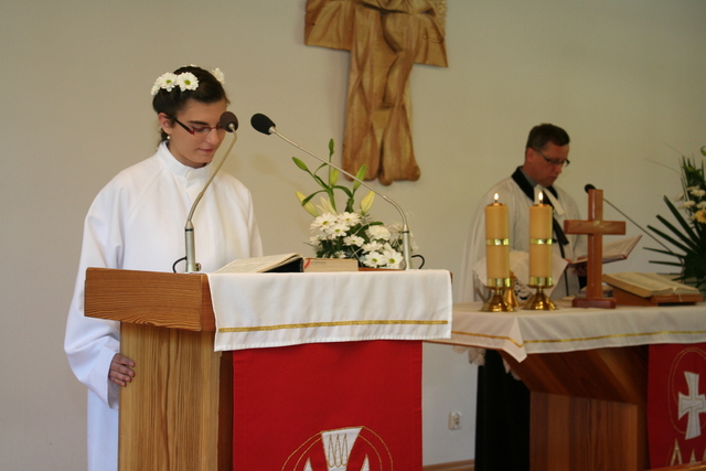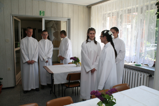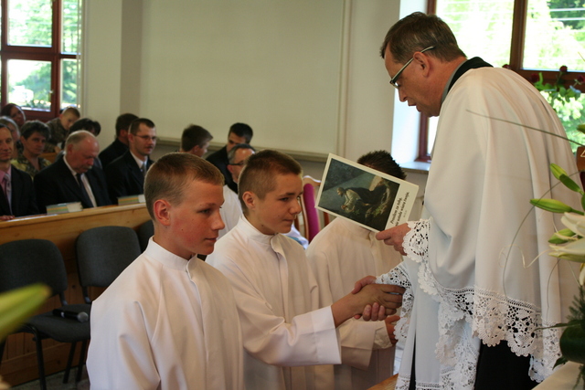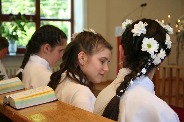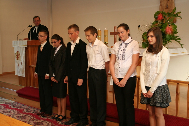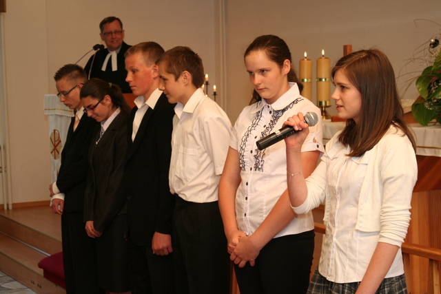 Wcześniej jednak, podczas uroczystości Wniebowstąpienia Pańskiego, 17 maja, miał miejsce egzamin na zakończenie nauki konfirmacyjnej. Młodzież tym samym przypomniała obecnym na nabożeństwie parafianom przykazania Boże, które Pan Bóg przekazał Mojżeszowi na górze Synaj. Wiedza ta stanowi wycinek nauczania katechetycznego obowiązującego konfirmantów.