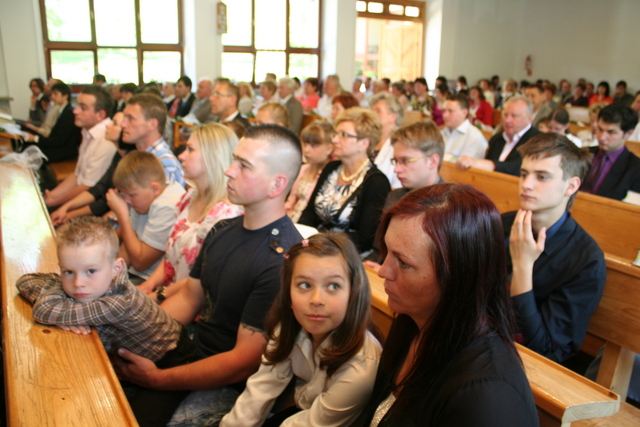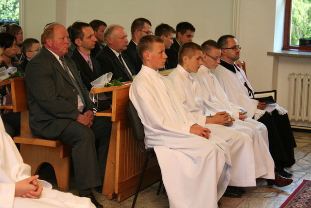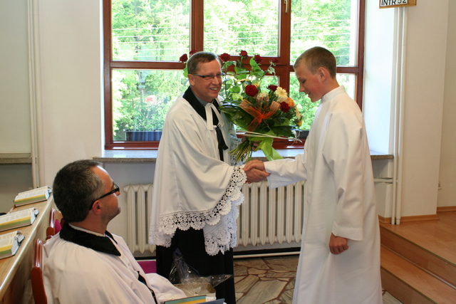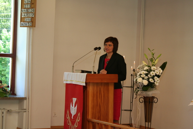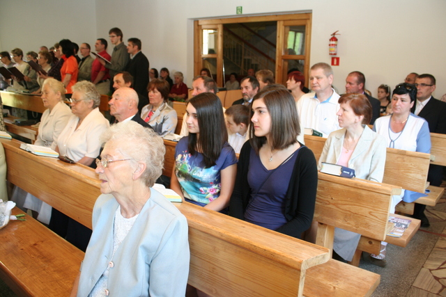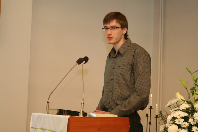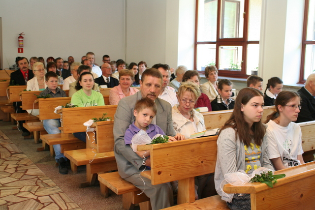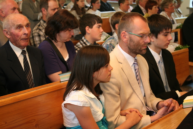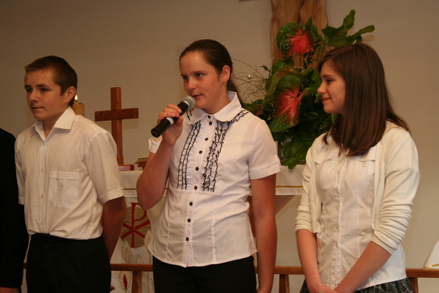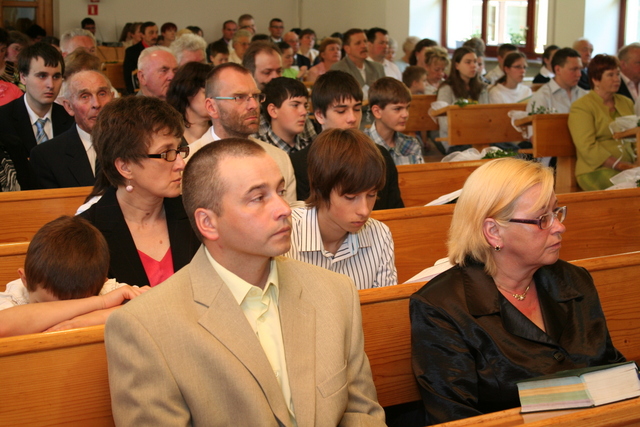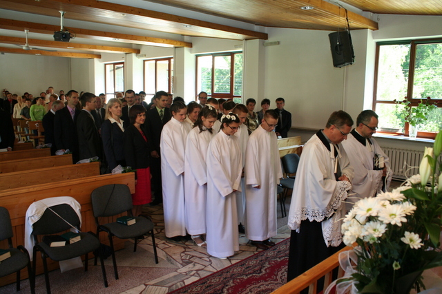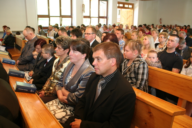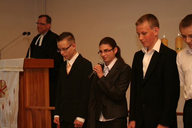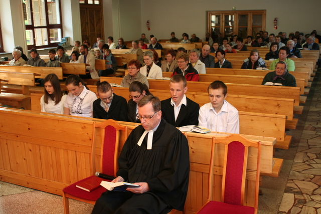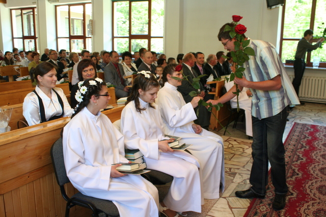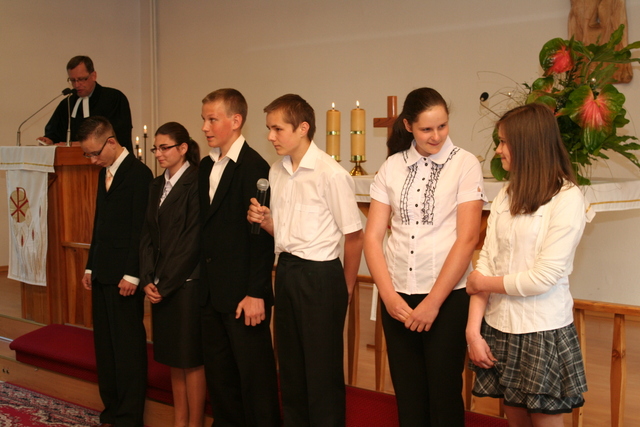 Na niedzielne nabożeństwo zaproszony został ks. Marcin Pilch z parafii z Czeskiego Cieszyna, który w przemówieniu spowiednim zaprosił młodych do Stołu Pańskiego, przypominając o tym, że Pan Jezus mówił, aby czynić to na Jego pamiątkę. Ten duchowy pokarm, podkreślał, jest nam potrzebny do duchowego życia. O potrzebie dalszego rozwoju, trwaniu w wierze, wzmacnianiu więzi z Panem Jezusem, pod warunkiem, że osobiście został lub zostanie przyjęty jako Zbawiciel do naszego życia, mówiła również kurator – Marzena Brózda. Zarówno ona, jak i przedstawiciel młodzieży – Daniel Pilch zachęcali konfirmantów do społeczności z wierzącymi, do stałej obecności w Kościele poprzez udział w spotkaniach młodzieżowych, zespole muzycznym i innych imprezach chrześcijańskich. W trakcie nabożeństwa młodzież podziękowała za naukę i opiekę ks. Zdzisławowi Sztwiertni oraz katechetce – pani Halinie Raszce i wręczyła kwiaty oraz upominki. O oprawę muzyczną uroczystości zadbał parafialny chór mieszany.
