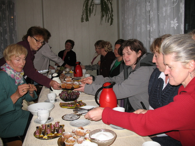 Trzecia edycja spotkań dla kobiet przebiegała w miłej atmosferze, przy kawie i cieście upieczonym przez panie – solenizantki, obchodzące swe urodziny w maju i czerwcu. Nie zabrakło również pieśni śpiewanych na chwałę Panu, a w śpiewie, jak zwykle, prowadziła pastorowa Ewa Sztwiertnia.