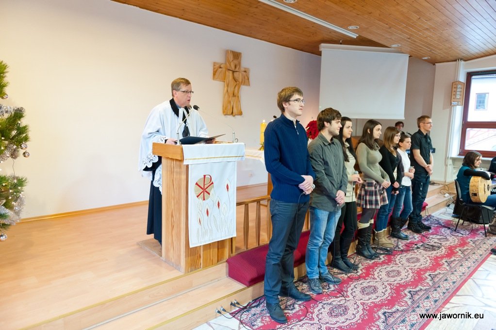Natomiast 2. dzień Świąt Bożego Narodzenia to czas nabożeństwa z liturgią młodzieżową, którą prowadził zespół parafialny. Kazanie wygłosił proboszcz parafii, ks. Zdzisław Sztwiertnia, podkreślając fakt zapowiedzenia narodzin naszego Zbawiciela przez proroków, co sprawia, że Jezus był i jest obiecanym przez Boga Mesjaszem, którego jednak naród wybrany nie rozpoznał i nie przyjął. My, jako chrześcijanie jesteśmy szczególnie zaproszeni do tego, by zaufać Jezusowi Chrystusowi i uczynić Go Panem naszego życia.
