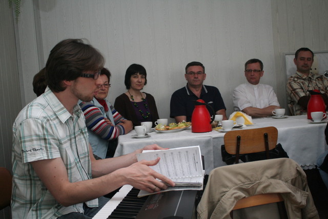 Po wykładzie był czas, aby przedyskutować omawiany temat, porozmawiać i po prostu przy kawie, herbacie, kanapkach i cieście spędzić ze sobą miłe chwile. Nie zabrakło też wspólnego śpiewu, w którym poprowadził Przemek Sztwiertnia.