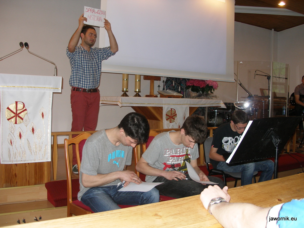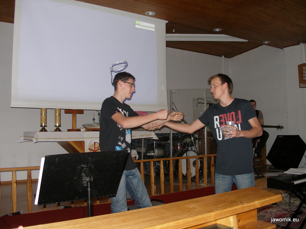 Jednym z punktów programu była historia życia Beniamina – chłopaka z Wisły. W swoim świadectwie w autentyczny sposób opowiedział o tym, jak diametralnie zmieniło się jego życie. Zażywałem różne, dziwne rzeczy i prowadziłem hulaszczy tryb życia. Byłem bardzo złym człowiekiem – opowiadał Beniamin. Na szczęście Pan Bóg postawił na mojej drodze ludzi, którzy uświadamiali mi, że tą osobą, którą mam poszukiwać w życiu i jedyną prawdą jest Jezus – spuentował rozmówca. Zaprezentowane zostały również umiejętności aktorskie Samuela, Marcina, Rafała i Jonatana. Za pomocą specjalnie przygotowanych scenek w humorystyczny, ale skłaniający do rozmyślań, sposób, chłopcy przedstawili codzienne, życiowe sytuacje z punktu widzenia osoby wierzącej.