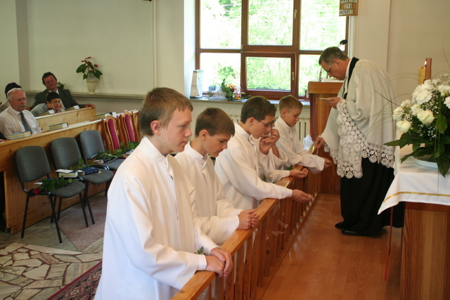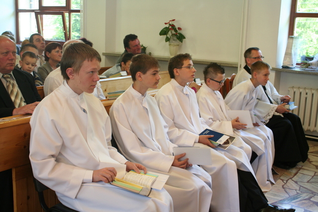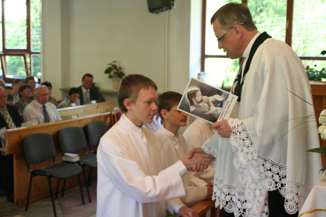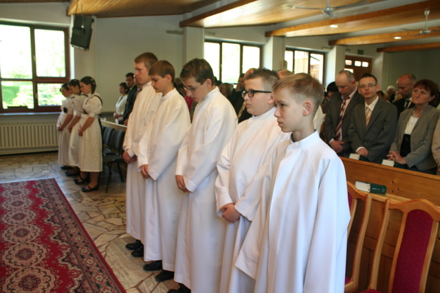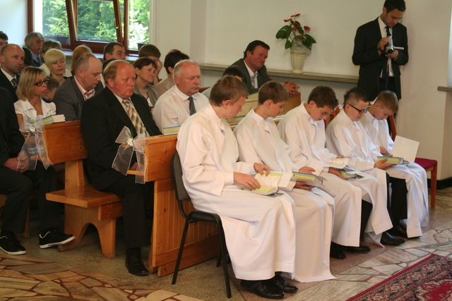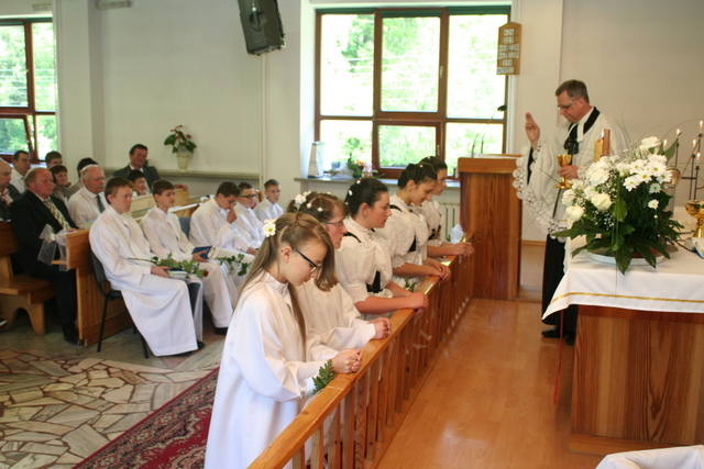 19. maja 2013 niedzielne nabożeństwo miało charakter szczególny, gdyż podczas tej uroczystości 10 młodych parafian przystąpiło do konfirmacji. Zanim jednak do tego doszło, w święto Wniebowstąpienia Pańskiego (9 maja) odbył się tradycyjnie już egzamin przeprowadzony przez ks. Zdzisława Sztwiertnię. Egzamin ten stanowił przypomnienie prawd poznanych przez dwa lata nauki przedkonfirmacyjnej, a dokładnie dotyczył apostolskiego wyznania wiary.