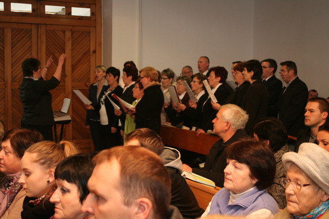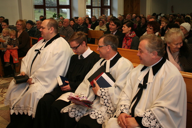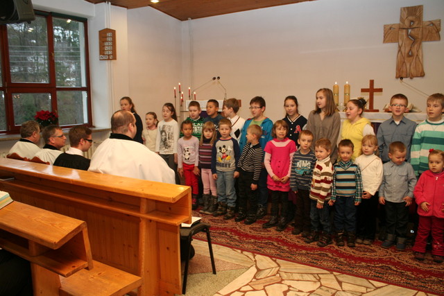 Podczas nabożeństwa wystąpił parafialny chór mieszany, chórek dziecięcy, a także jedną pieśń zaśpiewało trio rodzinne – Ania Iskrzycka oraz Przemysław i Piotr Sztwiertnia.