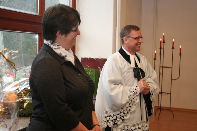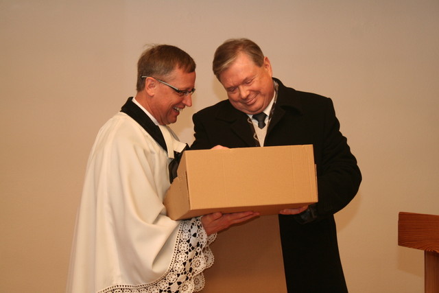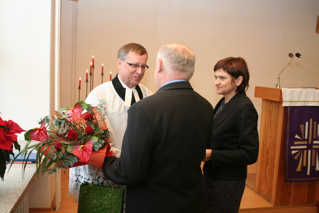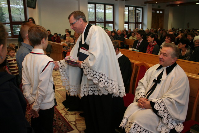 Zarówno uczestniczący w nabożeństwie księża, jak i poseł na Sejm RP – pan Czesław Gluza, kurator Parafii - pani Marzena Brózda oraz prezes chóru – pan Zbigniew Czyż wręczyli kwiaty i prezenty Jubilatowi, życząc Mu wszelkich Bożych łask i błogosławieństwa.