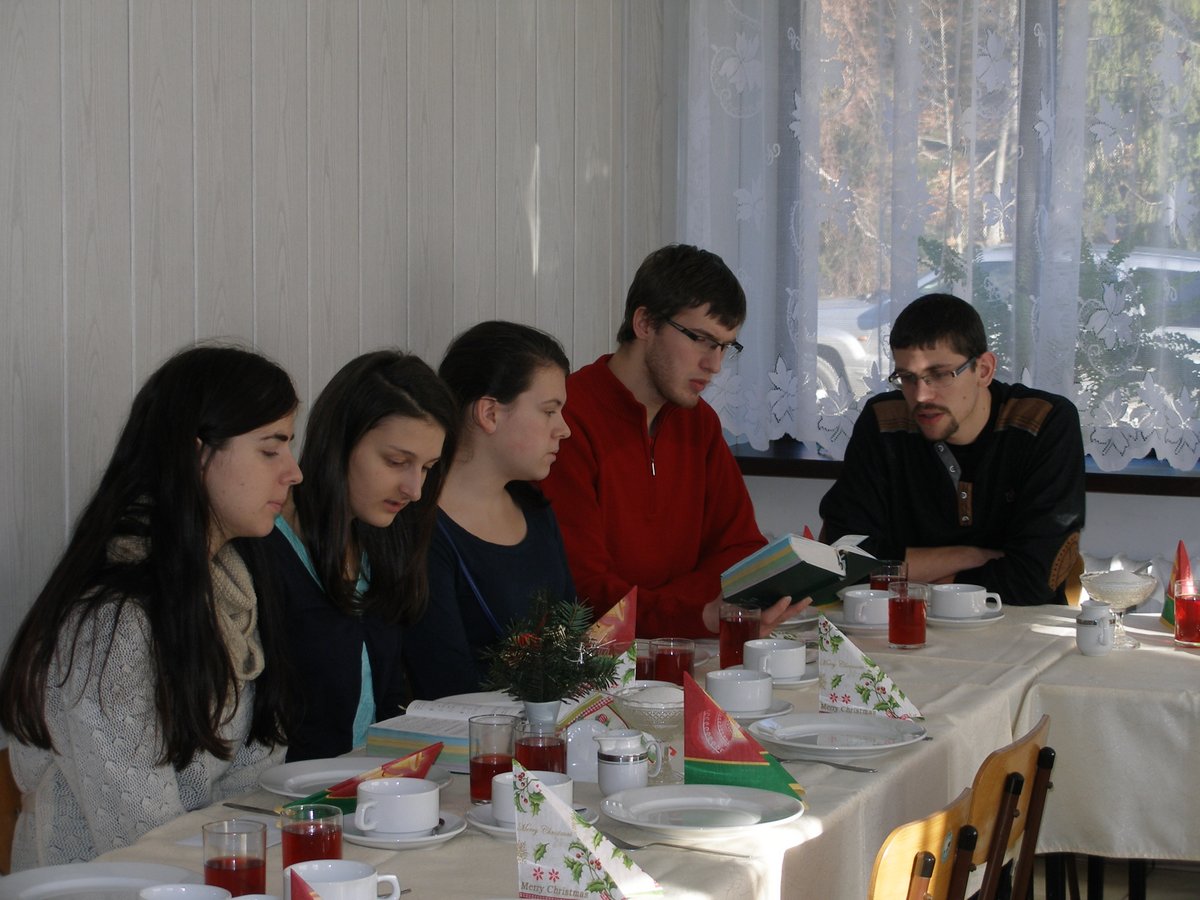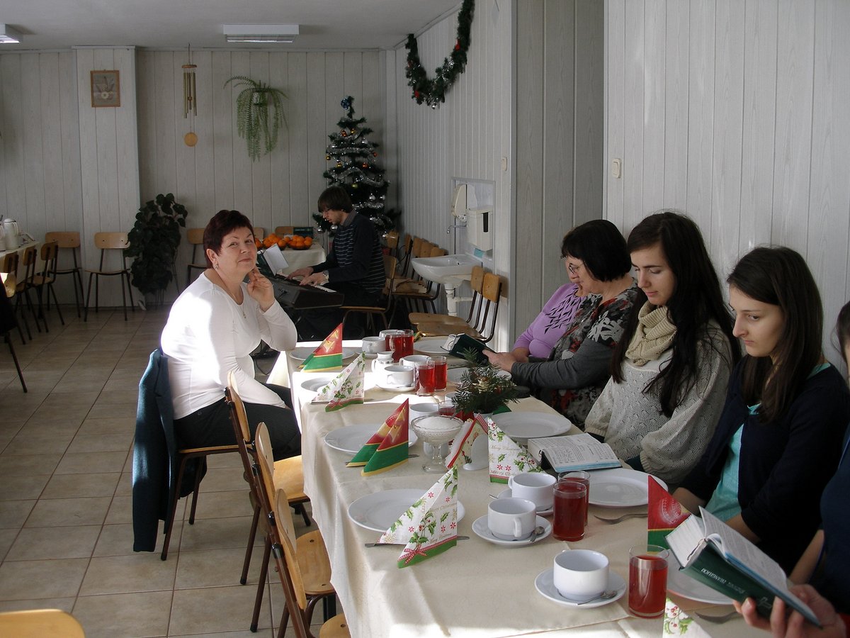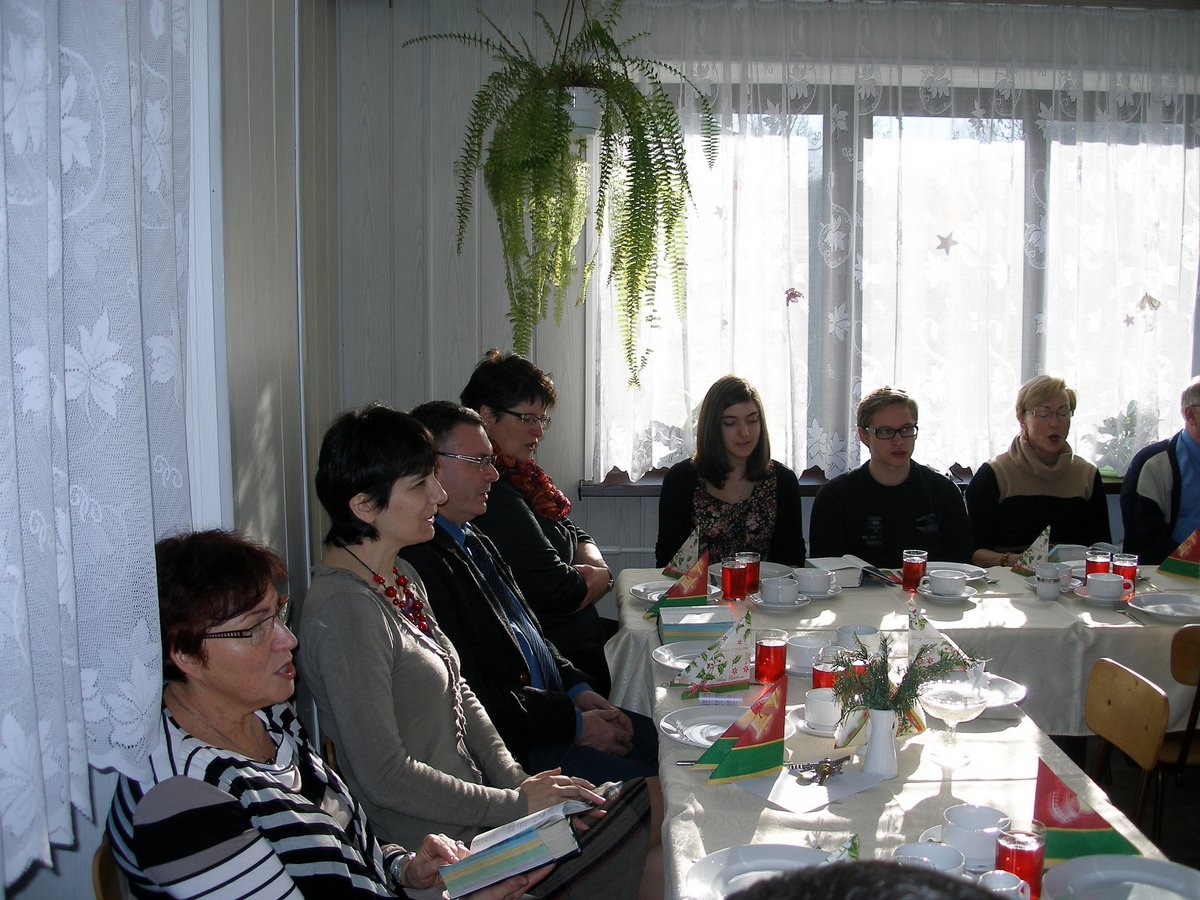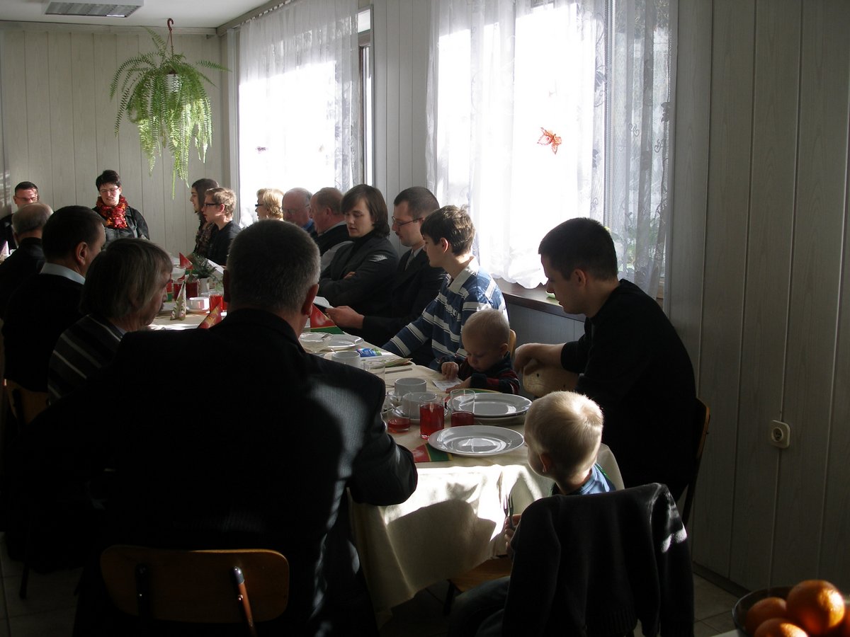 Spotkanie to było okazją do spojrzenia na miniony rok, a także do podzielenia się spostrzeżeniami dotyczącymi różnych płaszczyzn służby w naszej Parafii. Przy zastawionych stołach w świątecznej atmosferze był czas na kolędowanie. Podczas tego spotkania ks. proboszcz podziękował obecnym.za ich pełną poświęcenia służbę dla Parafii. Wolontariuszom Parafii wręczono jako podziękowanie talony do zrealizowania w drogerii "Alicja". W czasie tego spotkania głoś zabrał prezes naszego chóru Zbigniew Czyż, który nawiązał do jubileuszu 30 rocznicy poświęcenia Domu Katechetycznego. Przypomniał, że w bieżącym roku nasz chór przygotowuje się do jubileuszu 30 lat śpiewania na chwałę Bogu. Na zakończenie spotkania wszyscy obecni zostali obdarowani książeczką: "Gdzie jest nasze Betlejem" autorstwa Lidii Czyż.