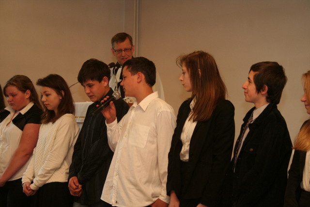 Dnia 27 kwietnia, w trakcie niedzielnego nabożeństwa, odbył się egzamin tegorocznych konfirmantów. Odpowiedzi udzielane przez gimnazjalistów na zadawane przez ks. proboszcza Zdzisława Sztwiertnię pytania miały posłużyć przypomnieniu zborowi o podstawowych prawdach.