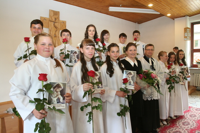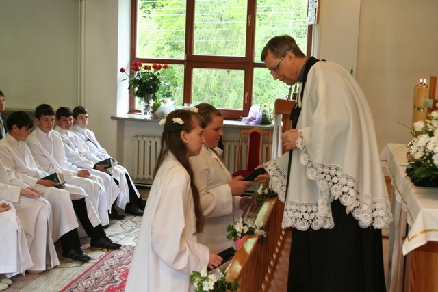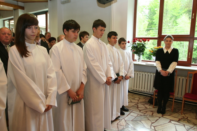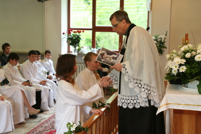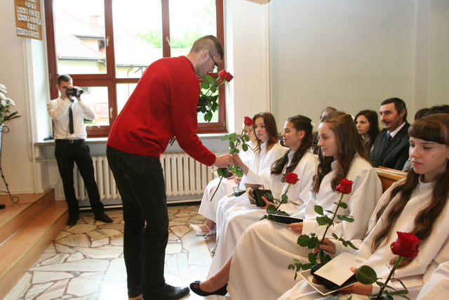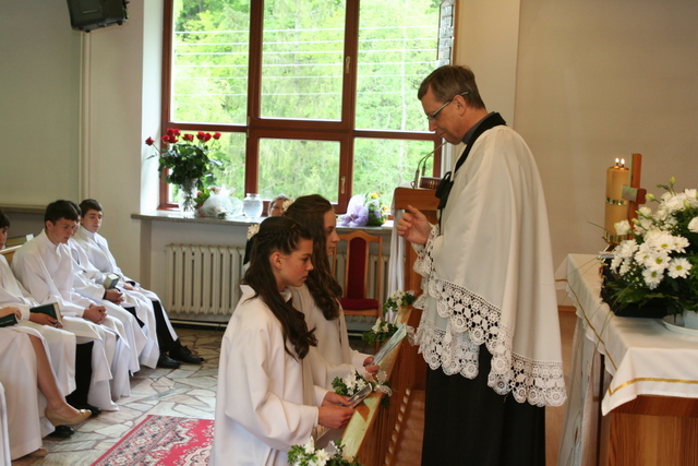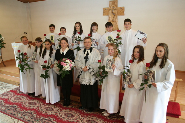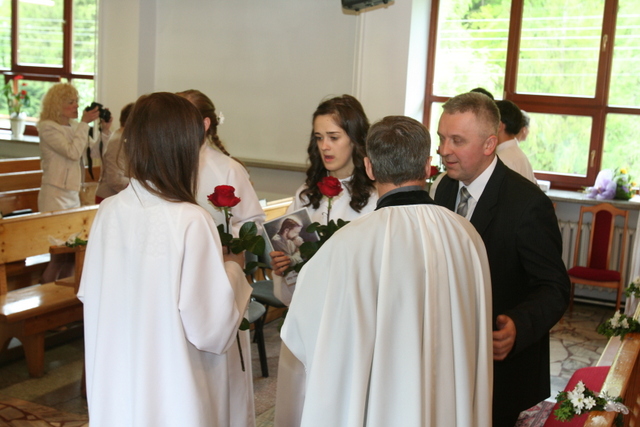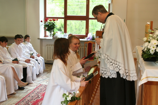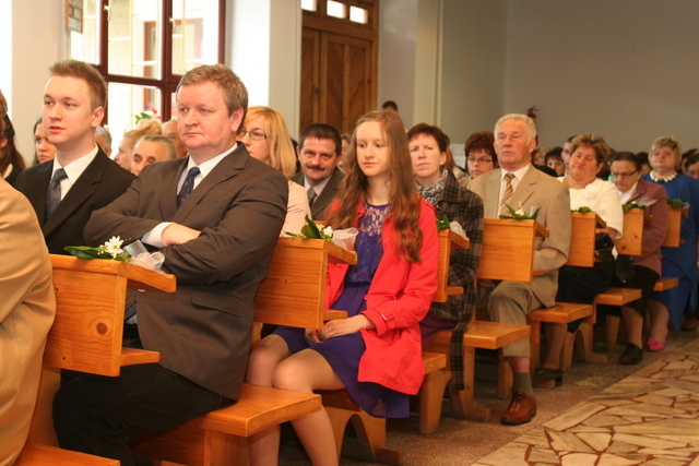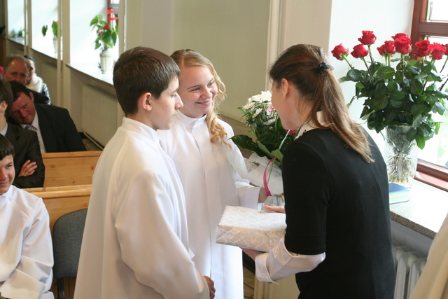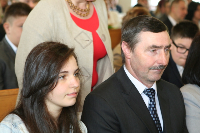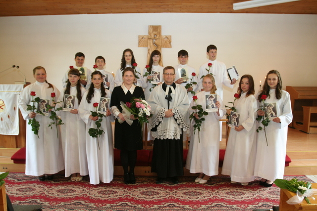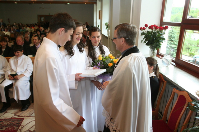 W trakcie nabożeństwa przedstawiciele grupy konfirmantów podziękowali księdzu Zdzisławowi Sztwiertni oraz katechetce Halinie Raszce za opiekę i naukę. Wreczyli kwiaty i upominki. O oprawę muzyczną zadbał chór parafialny.