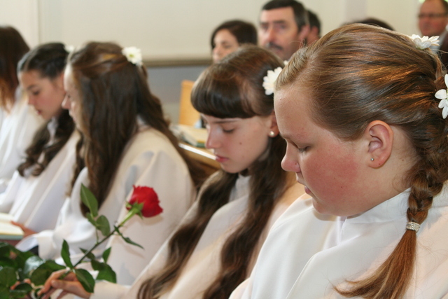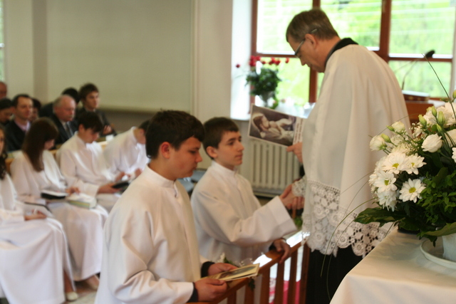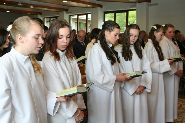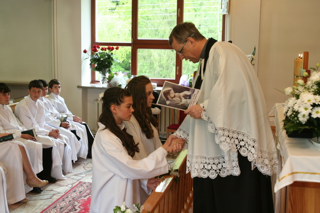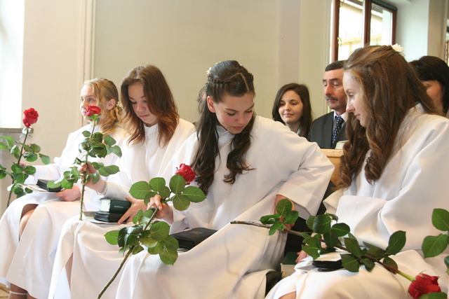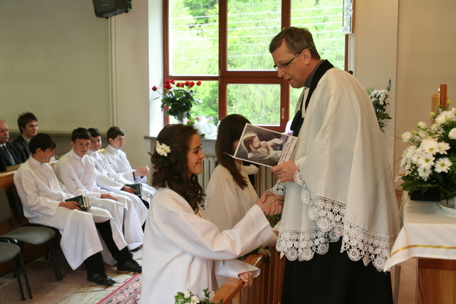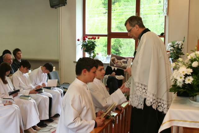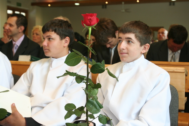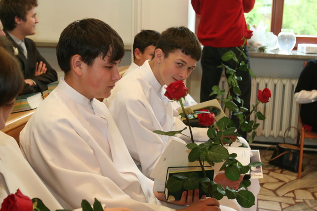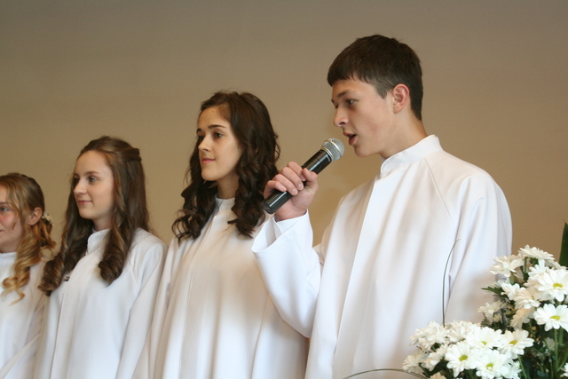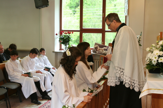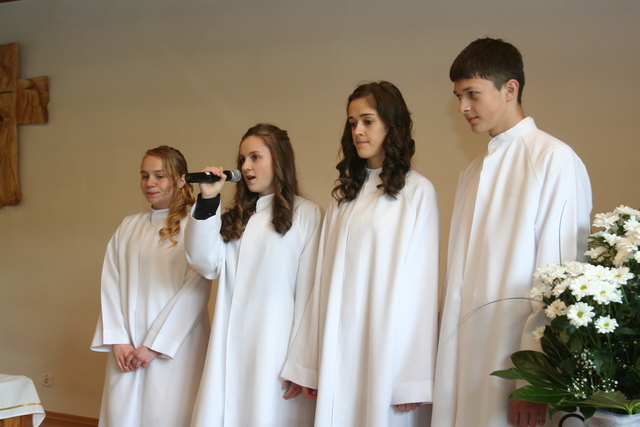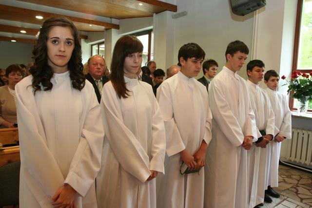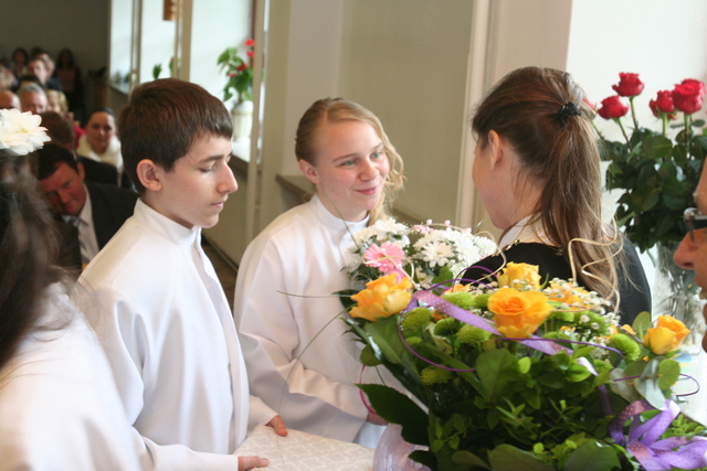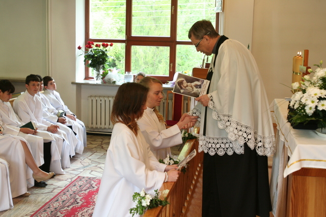 W trakcie nabożeństwa przedstawiciele grupy konfirmantów podziękowali księdzu Zdzisławowi Sztwiertni oraz katechetce Halinie Raszce za opiekę i naukę. Wreczyli kwiaty i upominki. O oprawę muzyczną zadbał chór parafialny.