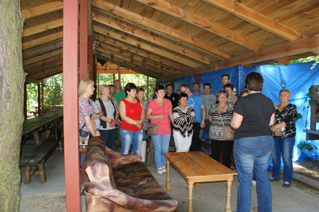 w Polsce. Następnie udaliśmy się na wycieczkę objazdową po okolicy. Naszym przewodnikiem był sam Wójt. Mieliśmy okazję odwiedzić kompleks szkolny – szkoła podstawowa, gimnazjum i przyległe do nich boiska oraz halę sportową. Byliśmy pod wrażeniem niezwykłej gospodarności władz i mieszkańców tego małego miasteczka. Budynki szkół prezentują się okazale. Z boisk, hali sportowej i kortów tenisowych mogą korzystać wszyscy chętni. Szczytem marzeń okazało się boisko „Orlik”, które dzięki specjalnemu przygotowaniu, zimą zamienia się w lodowisko. Gmina w planach ma jeszcze budowę basenu.