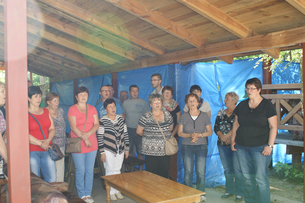 Skoro już tyle zobaczyliśmy, chcieliśmy dać coś od siebie. Po południu wystąpiliśmy więc z krótkim programem na uroczystości związanej z obchodami 730 –lecia miejscowości połączonej z świętem rodzinnym na terenie Domu Pomocy Społecznej dla mężczyzn. Jako chór zaprezentowaliśmy pieśni z naszego jubileuszowego programu i kilka piosenek regionalnych. Dodatkowo „Wańcy” zaśpiewali swoje sztandarowe góralskie przyśpiewki. Gospodarze zostali obdarowani przez nas wiślańskimi upominkami. Po oficjalnej uroczystości wzięliśmy udział w pikniku i tam znalazło się coś ”dla ciała”, a czas spędziliśmy w bardzo sympatycznej i ciepłej atmosferze. Potem jeszcze przystanek nieopodal w agroturystyce „Orłowy Gród” z krótką lekcją historii (dla zainteresowanych historią i odpoczynkiem w dziewiczym lesie: Żmigród, agroturystyka „Orłowy Gród” ) i wyjazd w dalszą drogę do Poznania. Sobota była bardzo aktywnym dla nas dniem, bo natychmiast po przyjeździe udaliśmy się na wieczorne zwiedzanie miasta. Niestety w tak krótkim czasie nie da się zobaczyć wszystkiego, ale z pewnością wiele informacji pozostanie w naszych głowach i chętnie tam jeszcze wrócimy, aby odświeżyć czy utrwalić naszą wiedzę. Dziękujemy pani Izie (wkrótce pół Wiślance) za oprowadzenie nas po mieście.