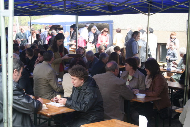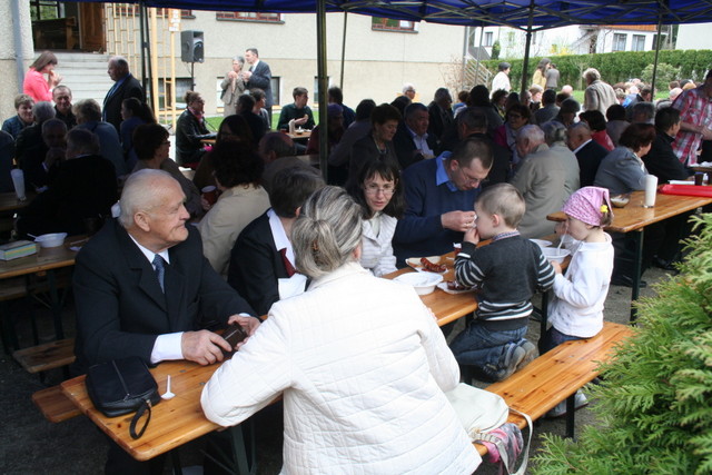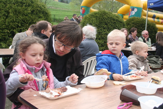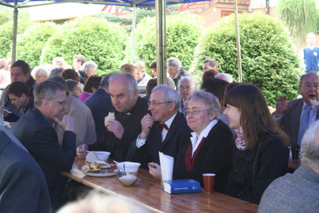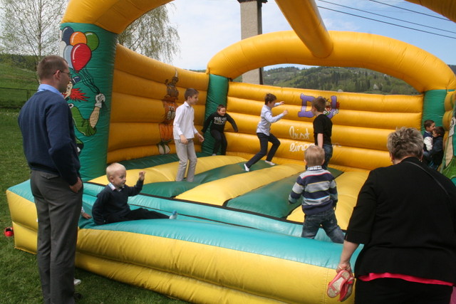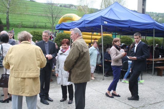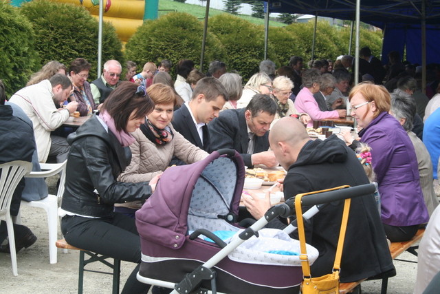 Wszyscy obecni zostali również zaproszeni na piknik parafialny, podczas którego można było spróbować grochówki, kiełbasek z grilla, kołaczy, a dzieci mogły pobawić się w „dmuchanym zamku”.