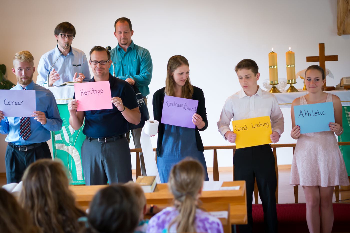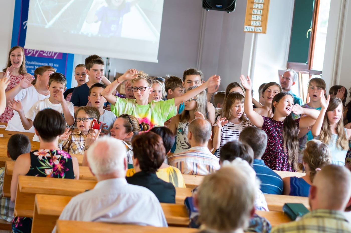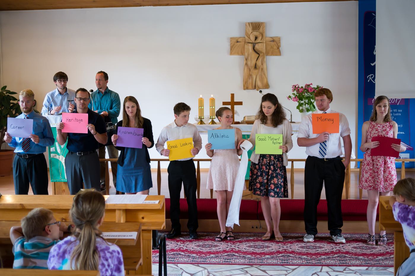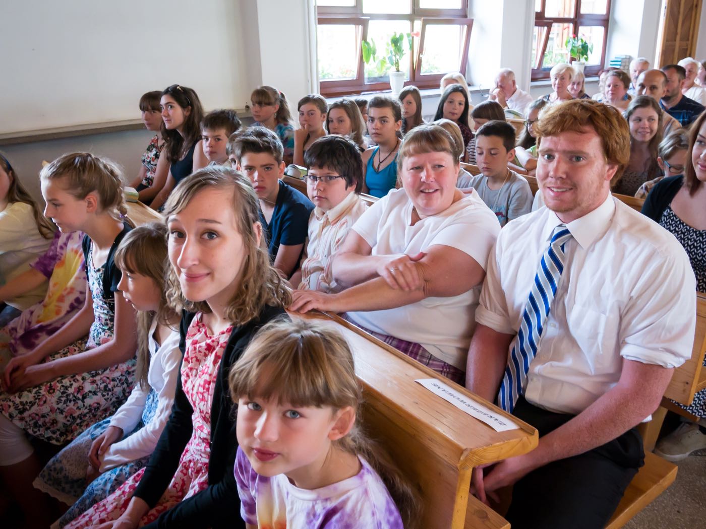 Każdy dzień zaczynał się śniadaniem na którym każdy dobudzał się na swój sposób – dzieci rozśmieszając się nawzajem; opiekunowie czynili rytualny bieg po kawę. Następnie przychodził czas na sprzątanie pokoi, które były później rzetelnie sprawdzane i oceniane. Każdego ranka wysłuchiwaliśmy historii biblijnych, które w tym roku koncentrowały się na prezentach (bo już ustaliliśmy, że wszyscy lubimy je dostawać) od Boga – przypomnieliśmy sobie historie Abrahama, błogosławieństwa dzieci, Jozjasza czy ukrzyżowania Jezusa; mieliśmy również niepowtarzalną okazję zaśpiewania kolędy w połowie lipca! Po czasie w kaplicy dzieci spotykały się w sześciu kolorowych grupach prowadzonych przez nauczycieli ze Stanów Zjednoczonych, by pod ich okiem poszerzyć swoją znajomość języka angielskiego. Tak oto mogliśmy poszukać podobieństw i różnić w sposobach obchodzenia urodzin, Bożego Narodzenia, Wielkanocy czy Walentynek, ale również poznaliśmy bliżej takie dni jak Święto Dziękczynienia czy Halloween. Zajęcia odbywały się na trzech stacjach. Jedna z nich polegała na wzbogaceniu słownictwa dotyczącego danego święta, kolejna pozwoliła na przedstawienie święta w sposób plastyczny lub wykonania jakiejś aktywności związanego ze świętem – i tak na przykład w Wielkanoc wyruszyliśmy przed budynek w poszukiwaniu jajek wielkanocnych, w których były ukryte łakocie. Trzecia stacja pozwalała na utrwalenie sobie lekcji biblijnej z danego dnia, ale żeby za łatwo nie było, odtwarzana historia była w języku angielskim. Po południa upływały na zajęciach warsztatowych. W tym roku znów obozowicze mogli wykazać się swoim talentem aktorskim czy reżyserskim. Na zajęciach muzycznych przypominane były starsze pieśni oraz uczone nowe, a zajęcia plastyczne pozwalały odkryć w sobie duszę artysty lub rozwijać niezbędne umiejętności – takie jak pranie ręczne.
