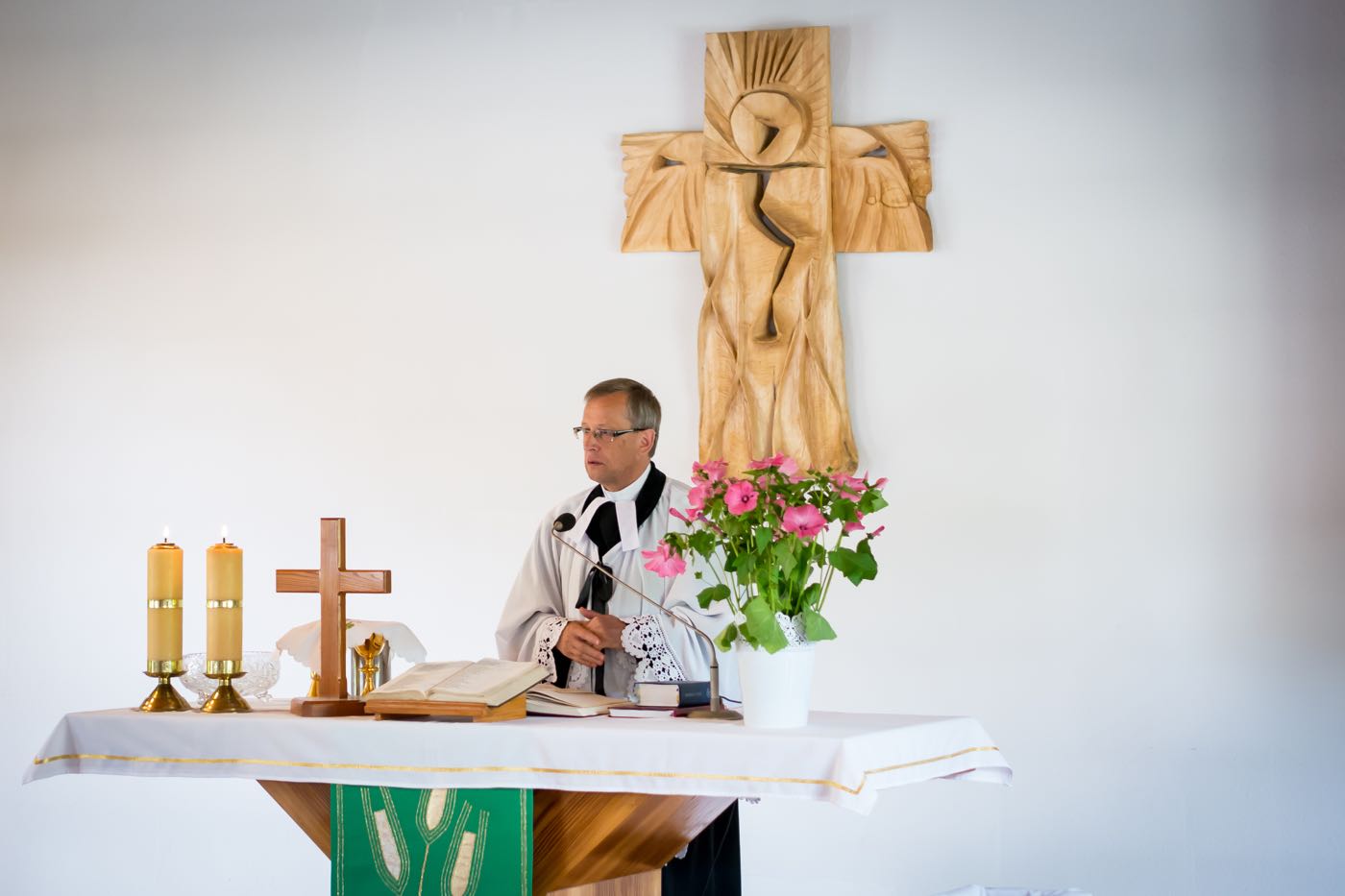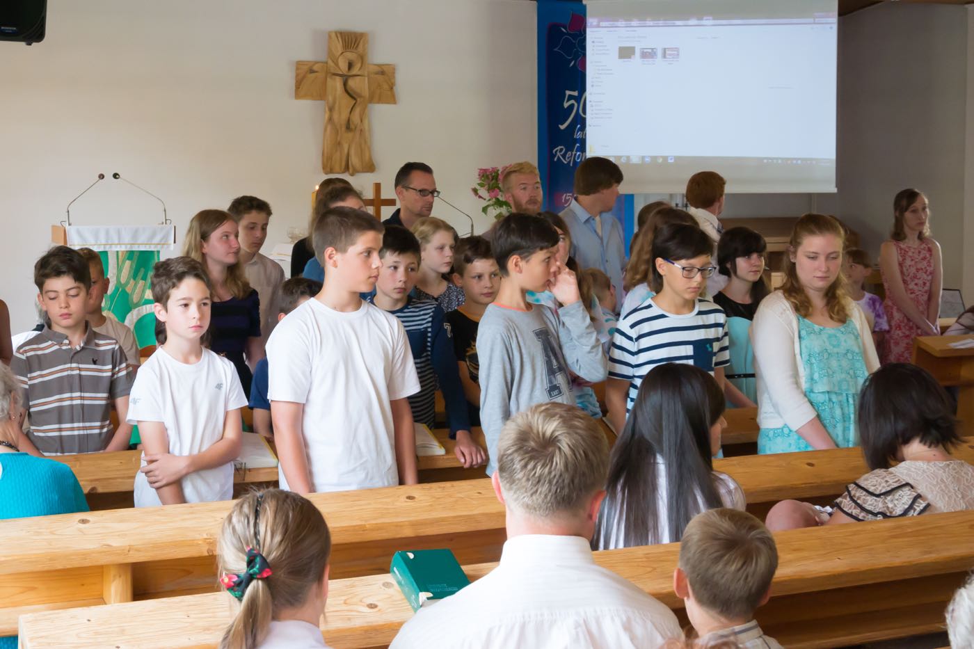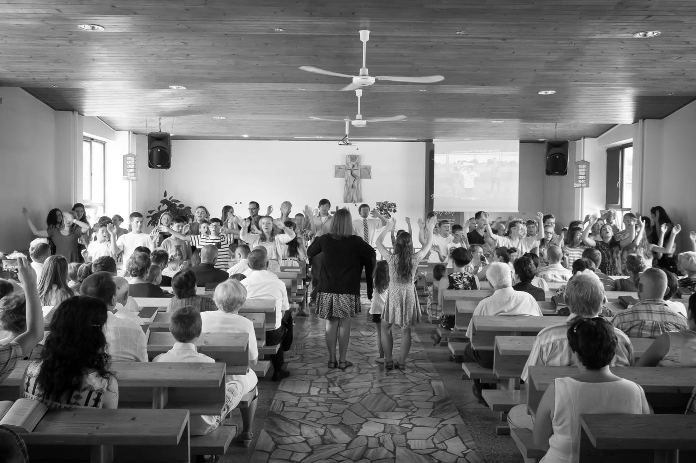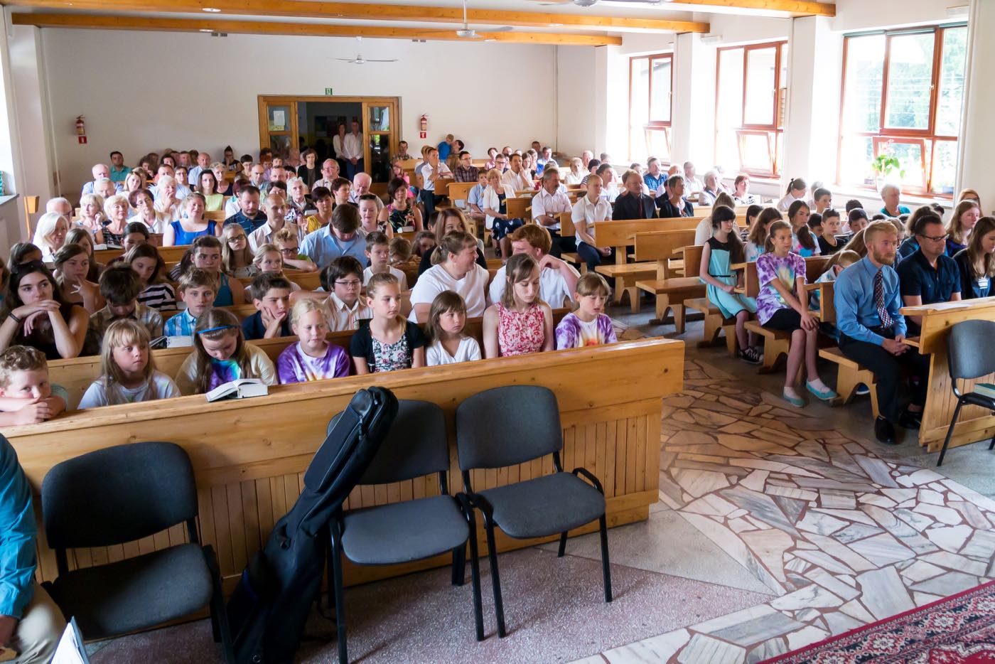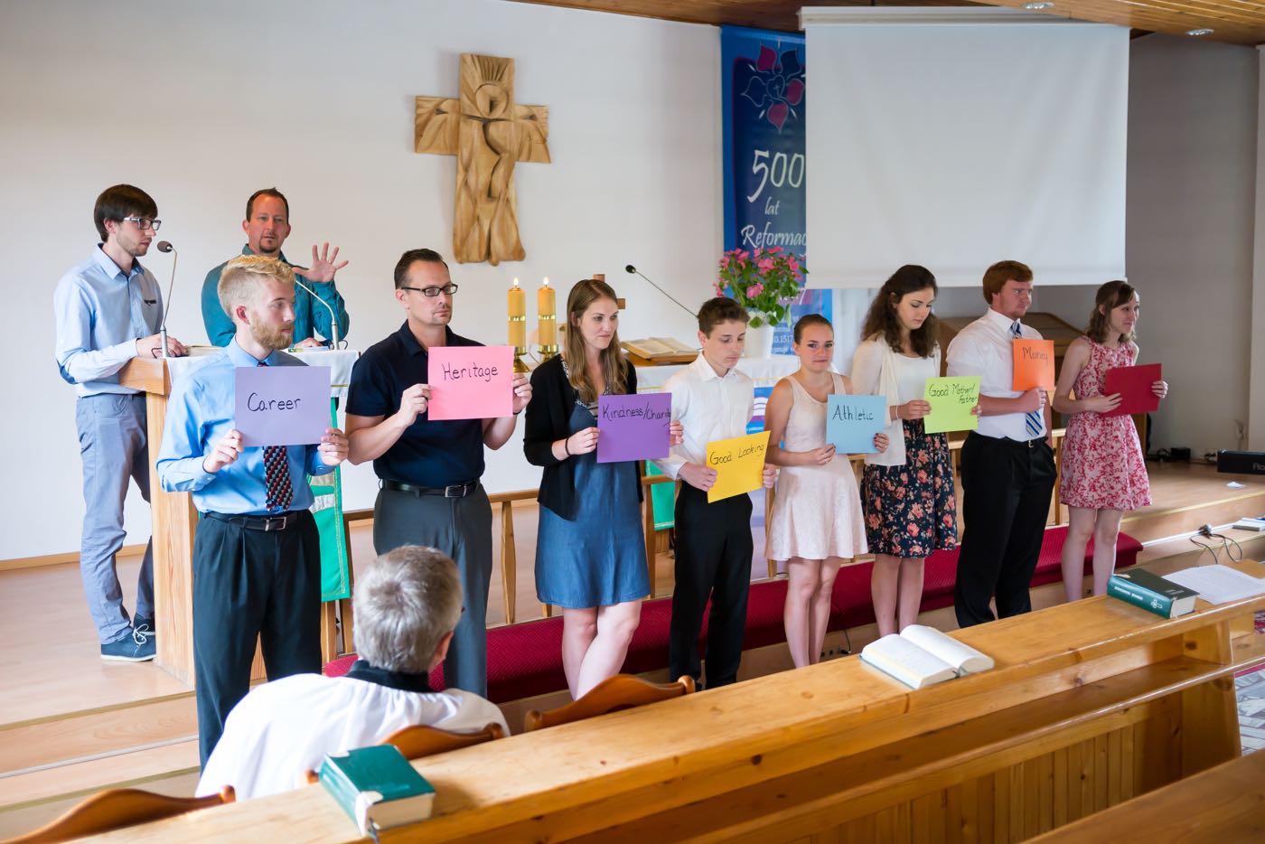 Każdy dzień zaczynał się śniadaniem na którym każdy dobudzał się na swój sposób – dzieci rozśmieszając się nawzajem; opiekunowie czynili rytualny bieg po kawę. Następnie przychodził czas na sprzątanie pokoi, które były później rzetelnie sprawdzane i oceniane. Każdego ranka wysłuchiwaliśmy historii biblijnych, które w tym roku koncentrowały się na prezentach (bo już ustaliliśmy, że wszyscy lubimy je dostawać) od Boga – przypomnieliśmy sobie historie Abrahama, błogosławieństwa dzieci, Jozjasza czy ukrzyżowania Jezusa; mieliśmy również niepowtarzalną okazję zaśpiewania kolędy w połowie lipca! Po czasie w kaplicy dzieci spotykały się w sześciu kolorowych grupach prowadzonych przez nauczycieli ze Stanów Zjednoczonych, by pod ich okiem poszerzyć swoją znajomość języka angielskiego. Tak oto mogliśmy poszukać podobieństw i różnić w sposobach obchodzenia urodzin, Bożego Narodzenia, Wielkanocy czy Walentynek, ale również poznaliśmy bliżej takie dni jak Święto Dziękczynienia czy Halloween. Zajęcia odbywały się na trzech stacjach. Jedna z nich polegała na wzbogaceniu słownictwa dotyczącego danego święta, kolejna pozwoliła na przedstawienie święta w sposób plastyczny lub wykonania jakiejś aktywności związanego ze świętem – i tak na przykład w Wielkanoc wyruszyliśmy przed budynek w poszukiwaniu jajek wielkanocnych, w których były ukryte łakocie. Trzecia stacja pozwalała na utrwalenie sobie lekcji biblijnej z danego dnia, ale żeby za łatwo nie było, odtwarzana historia była w języku angielskim. Po południa upływały na zajęciach warsztatowych. W tym roku znów obozowicze mogli wykazać się swoim talentem aktorskim czy reżyserskim. Na zajęciach muzycznych przypominane były starsze pieśni oraz uczone nowe, a zajęcia plastyczne pozwalały odkryć w sobie duszę artysty lub rozwijać niezbędne umiejętności – takie jak pranie ręczne.