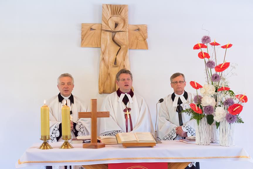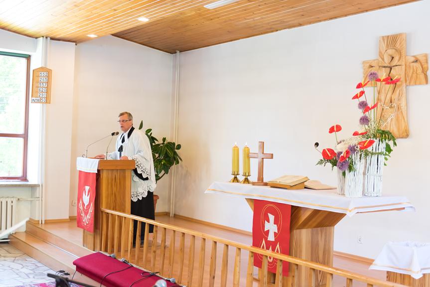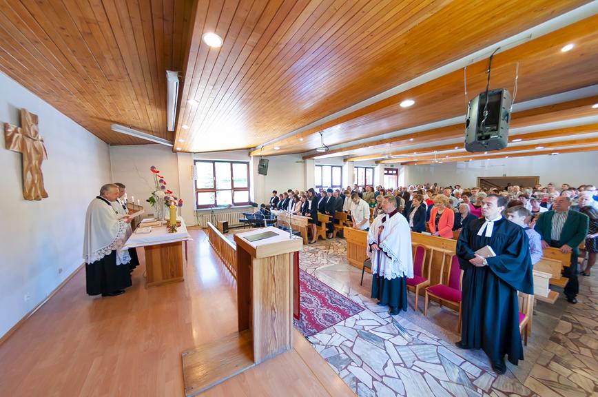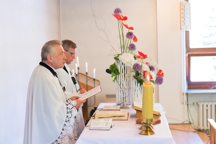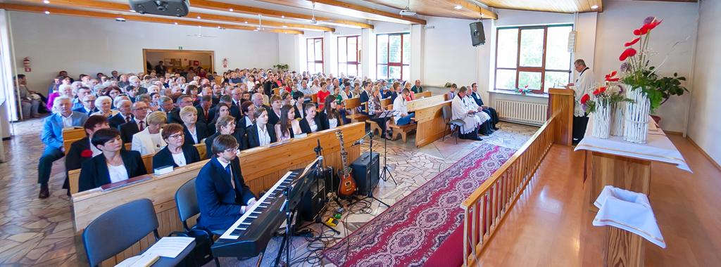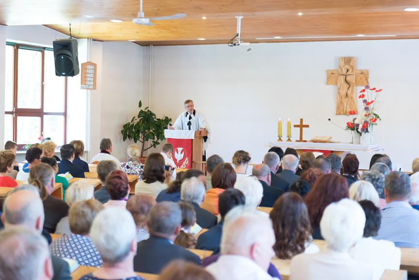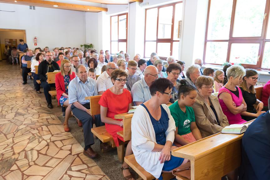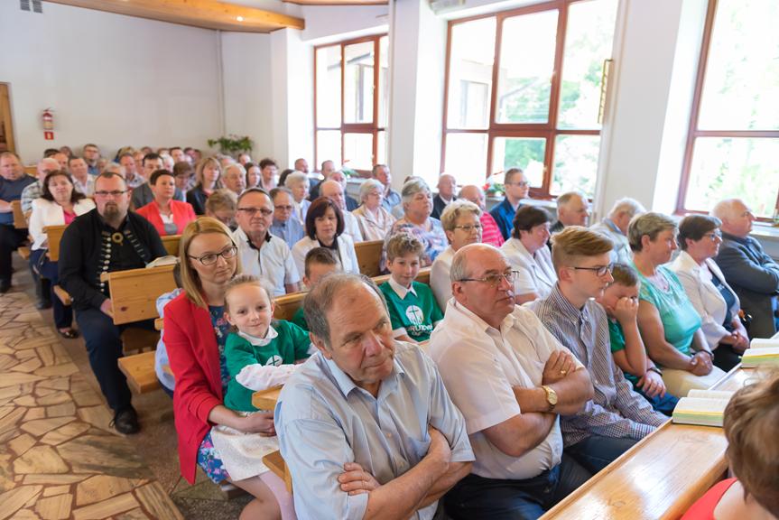 Szczególnie cieszyliśmy się obecnością ks. Bpa Jerzego Samca, który zwiastował Boże Słowo, oraz ks. Vladimira Lovasa z Aradaca w Serbii, ks. radcy Waldemara Szajthauera z Wisły i Burmistrza Miasta Wisła – p Tomasza Bujoka, którzy przekazali zgromadzonym słowa pozdrowienia. Witając obecnych ks. proboszcz przypomniał okoliczności powstania kaplicy w Wiśle Jaworniku (pierwotnie jako Domu Katechetycznego w 1983 roku, który miał przede wszystkim służyć młodzieży). Podziękował również wszystkim, którzy pomogli przy organizacji dzisiejszej uroczystości. Za dary do wypieku wspaniałych kołaczy, pomoc przy ich wypieku. Za prace porządkowe, ustawienie namiotów oraz za piękny wystrój kaplicy. Po nabożeństwie, na zewnątrz kaplicy, odbył się piknik parafialny. Przy grochówce, kiełbaskach z grilla, tradycyjnych kołaczach, kawie i herbacie można było spędzić razem czas. Nie zabrakło również atrakcji dla najmłodszych – dmuchanego zamku.