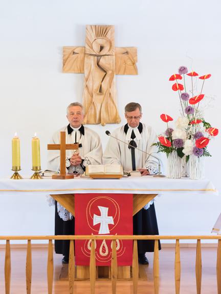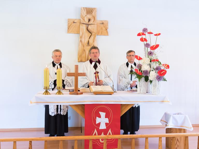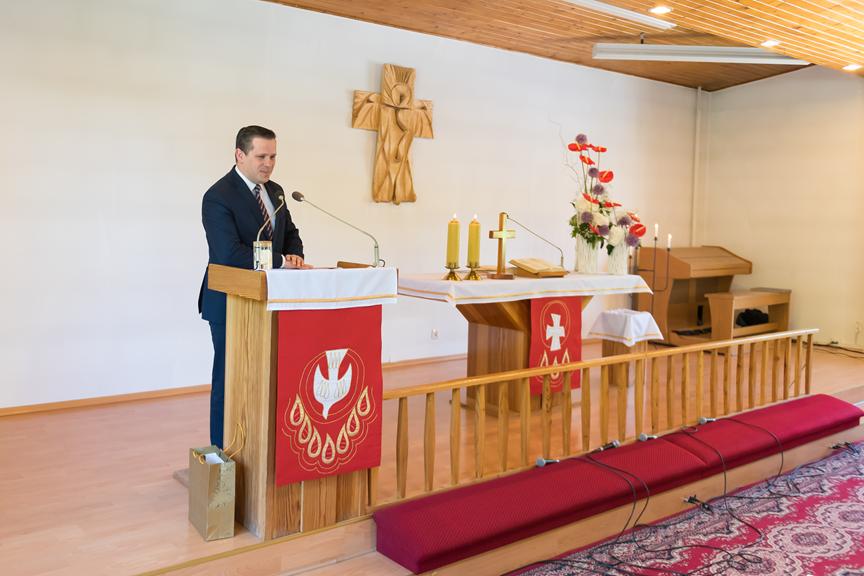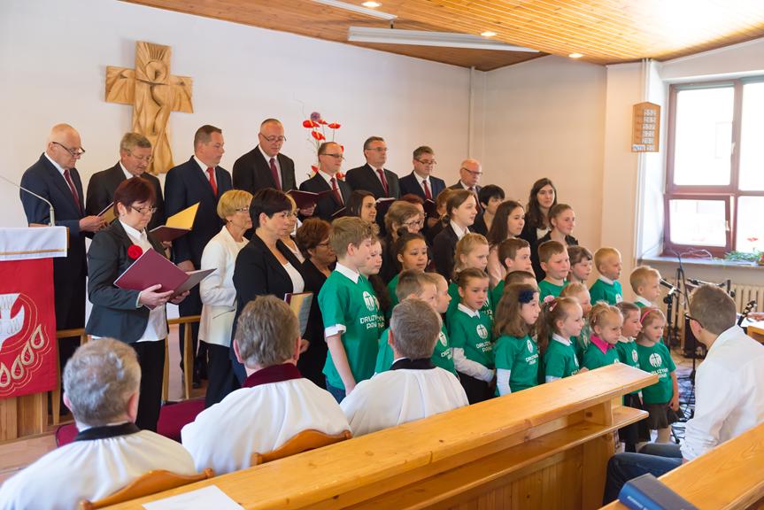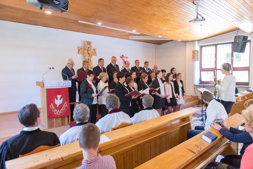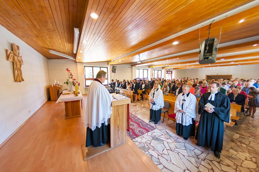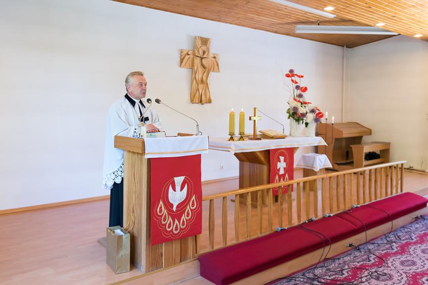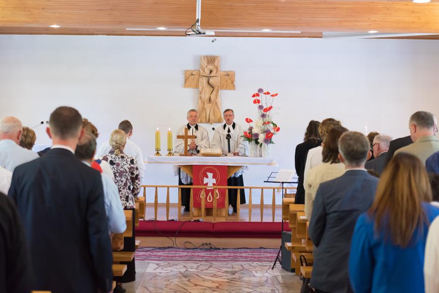 Szczególnie cieszyliśmy się obecnością ks. Bpa Jerzego Samca, który zwiastował Boże Słowo, oraz ks. Vladimira Lovasa z Aradaca w Serbii, ks. radcy Waldemara Szajthauera z Wisły i Burmistrza Miasta Wisła – p Tomasza Bujoka, którzy przekazali zgromadzonym słowa pozdrowienia. Witając obecnych ks. proboszcz przypomniał okoliczności powstania kaplicy w Wiśle Jaworniku (pierwotnie jako Domu Katechetycznego w 1983 roku, który miał przede wszystkim służyć młodzieży). Podziękował również wszystkim, którzy pomogli przy organizacji dzisiejszej uroczystości. Za dary do wypieku wspaniałych kołaczy, pomoc przy ich wypieku. Za prace porządkowe, ustawienie namiotów oraz za piękny wystrój kaplicy. Po nabożeństwie, na zewnątrz kaplicy, odbył się piknik parafialny. Przy grochówce, kiełbaskach z grilla, tradycyjnych kołaczach, kawie i herbacie można było spędzić razem czas. Nie zabrakło również atrakcji dla najmłodszych – dmuchanego zamku.