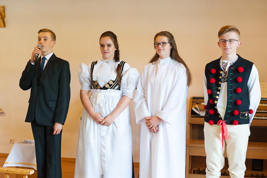 Do tegorocznych konfirmantów, a mianowicie: Łukasza Cieślara, Piotra Cieślara, Nikoli Kobielusz, Dawida Kozoka, Szymona Legierskiego, Magdaleny Pezda, Agaty Troszok, Julii Zawada, Daniela Zwiasa zwrócił się również kurator Rady Parafialnej Władysław Szalbot podkreślając, że z dniem konfirmacji stali się pełnoprawnymi członkami Parafii. Do tegorocznych konfirmantów przemówił się również lider młodzieżowy – Daniel Pilch, który zaprosił konfirmantów na najbliższe spotkanie młodzieżowe i zachęcił do zaangażowania się w życie parafialne. W trakcie nabożeństwa młodzież podziękowała za naukę i opiekę ks. Zdzisławowi Sztwiertni i katechetce. O oprawę muzyczną uroczystości zadbał parafialny chór mieszany pod dyrekcją p. Janiny Polok.